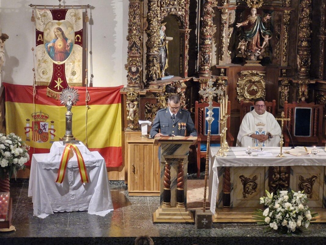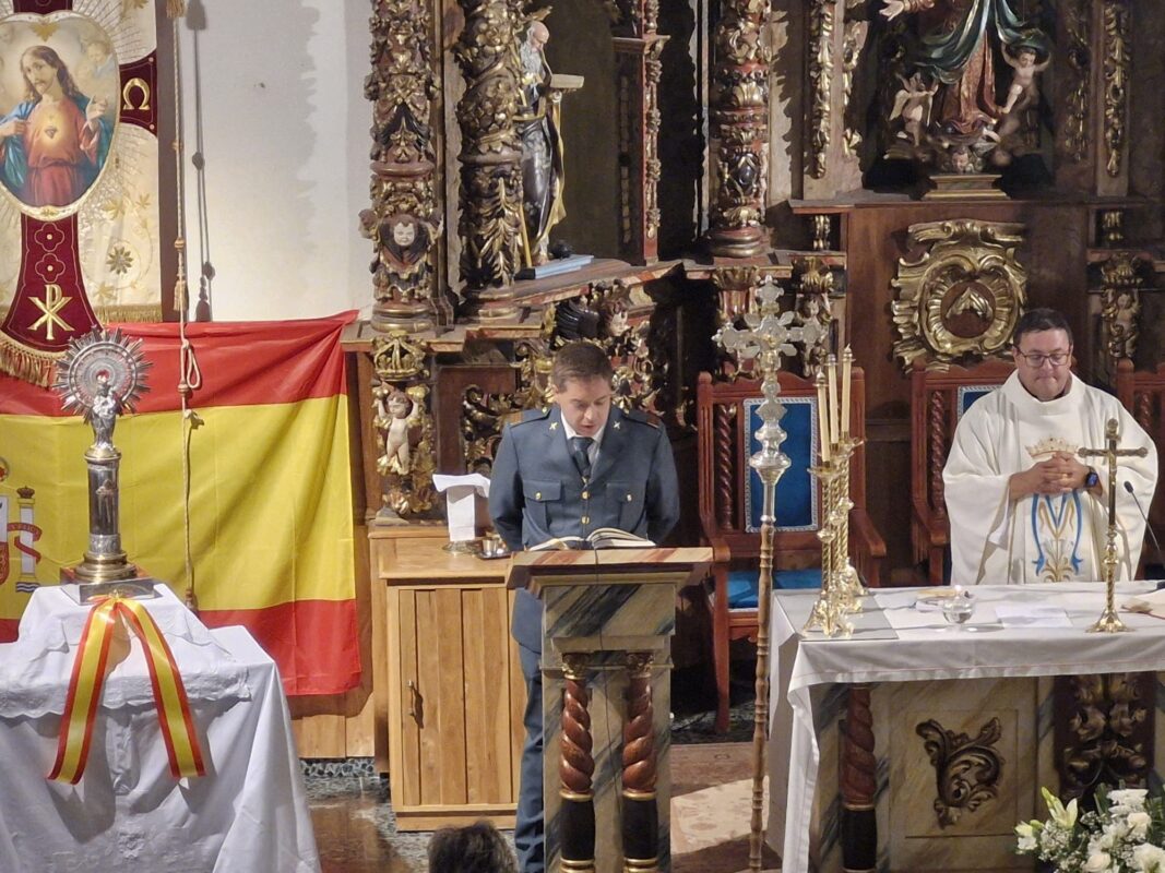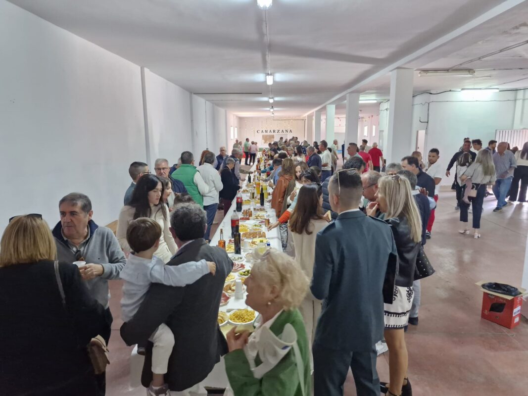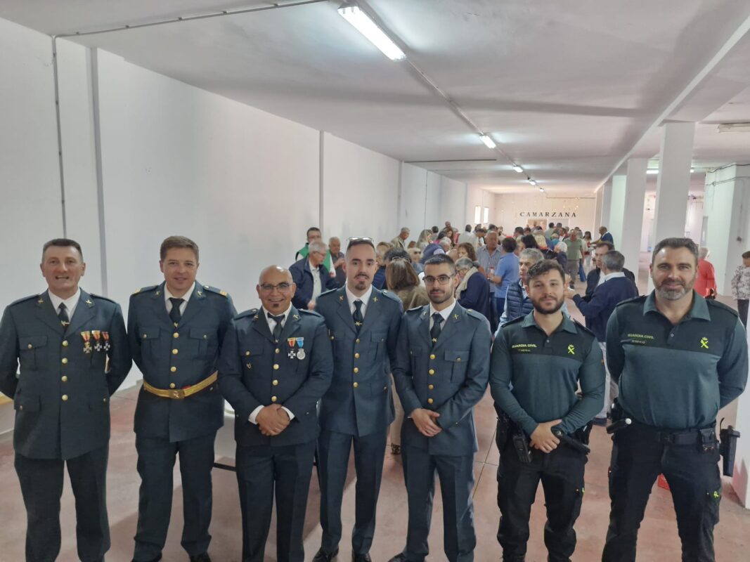 La celebración de una misa en la iglesia parroquial de Camarzana, en la que participaron activamente los agentes de la Benemérita, daba paso a un vino español en las instalaciones del edificio municipal Las Nieves.
