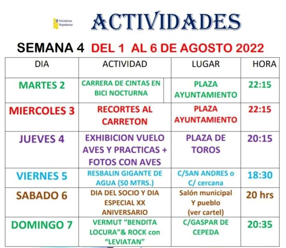 La Asociación Iniciativas Ropelanas continúa desarrollando con éxito su programa cultural del verano en Fuentes de Ropel con un extenso abanico de actividades como se viene informando en Benavente Digital y Televisión Benavente.