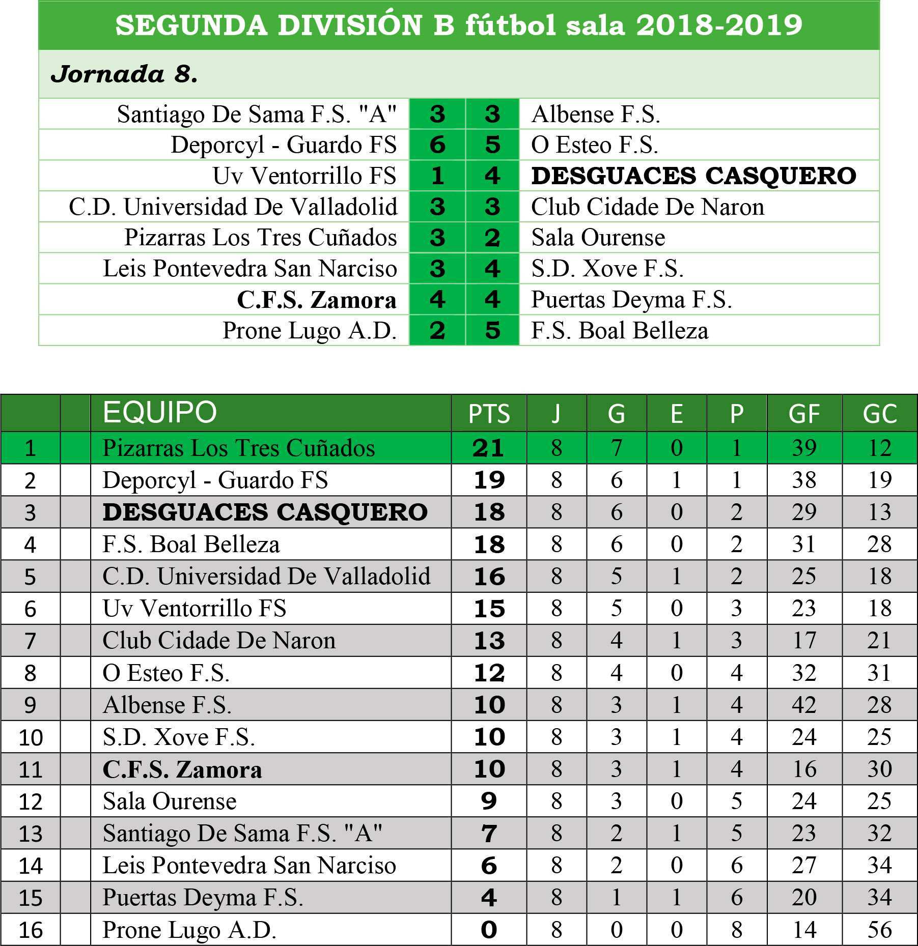 El técnico local intentó superar esa línea con el portero jugador, pero la jugada le salió mal ya que un robo de balón permitió a Charlie cerrar el partido y llevarse tres puntos que dan un empujón más en la tabla situando al Desguaces Casquero terceros a tres del Tres Cuñados que es quien manda.