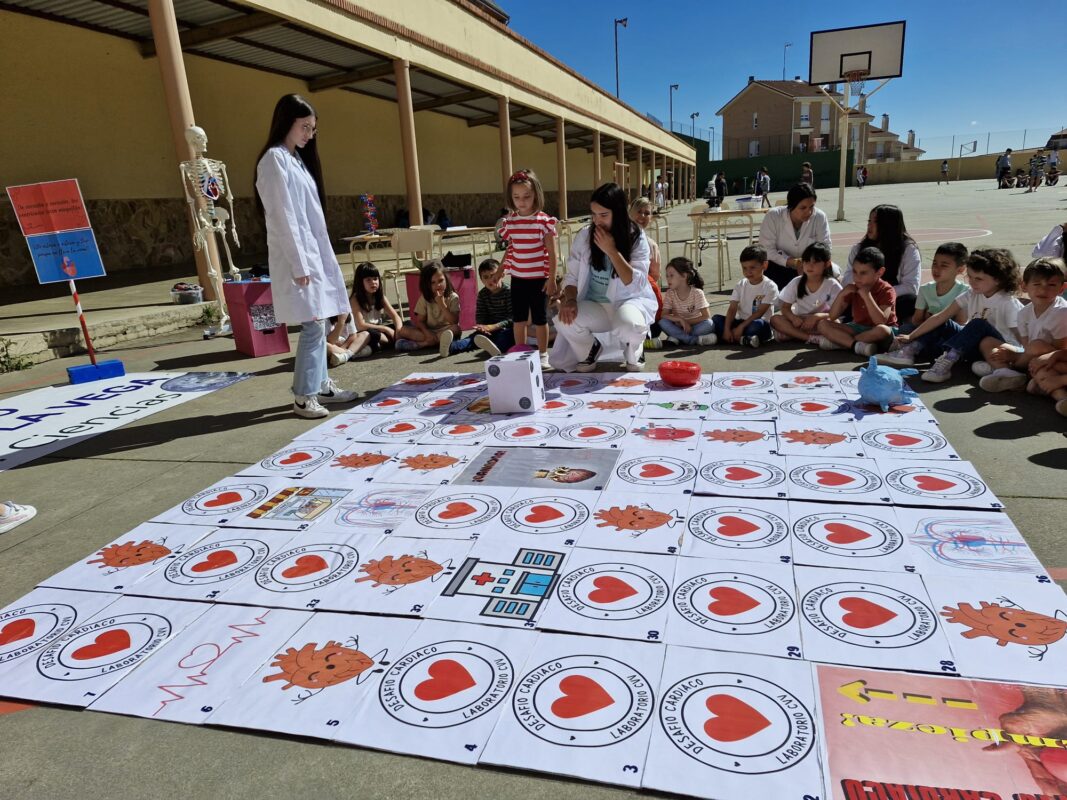 «De corazón a corazón, los ventrículos laten mogollón». Así sonaba la original versión de la oca que han preparado los alumnos del laboratorio de cuarto de la ESO del Colegio Virgen de la Vega. Estos estudiantes han sorprendido a todos con su ingenioso proyecto educativo, adaptando el tradicional juego de la oca para enseñar a sus compañeros más pequeños sobre la salud cardiovascular.