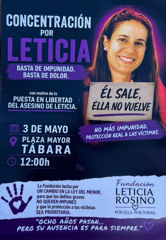 Para recordar su memoria y seguir exigiendo que se endurezcan las penas para menores que cometen asesinatos y violaciones, Inmaculada ha convocado un acto el próximo 3 de mayo en la Plaza Mayor de Tábara.