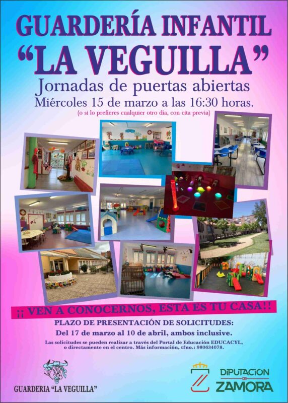 La Guardería infantil “La Veguilla” de Benavente realiza una jornada de puertas abiertas para este miércoles 15 de marzo a las cuatro y media de la tarde o cualquier otro día con cita previa para conocer al completo las instalaciones y servicios con los que cuenta el centro dependiente de la Diputación de Zamora.
