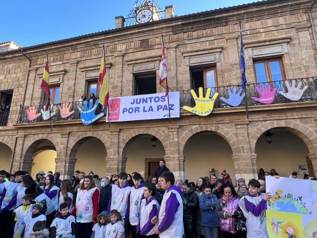 Con motivo del Día Escolar de la No Violencia y la Paz que se conmemora cada 30 de enero, el colegio Virgen de la Vega ha salido esta mañana a la calle pese al intenso frío para celebrar este día con una coreografía conjunta del todo el centro en la plaza mayor de la ciudad. En ella, gran cantidad de padres esperaban para ver este acto al que se unían muchas personas que pasaban por el lugar.