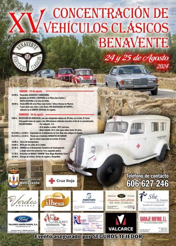 La XV Concentración de Vehículos Clásicos de Benavente se celebrará los próximos 24 y 25 de agosto. Hablamos con el socio y uno de los organizadores del evento, Isaías Félix Fidalgo, quien también nos muestra una de las joyas de esta edición: una ambulancia de guerra que, años después, fue adoptada por la Cruz Roja Española. ¿Se imaginan cuántos años tiene? La respuesta y todos los detalles en este reportaje.