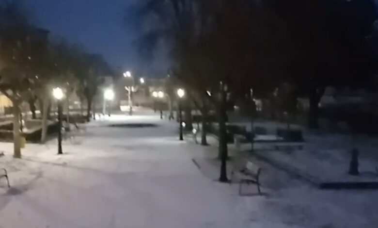 La nieve comenzó a caer a primera hora del sábado dejando estampas invernales y de postal aunque sin grandes acumulaciones. Por la tarde, ha comenzado a nevar con más fuerzas dejando mayores grosores por las calles del pueblo.