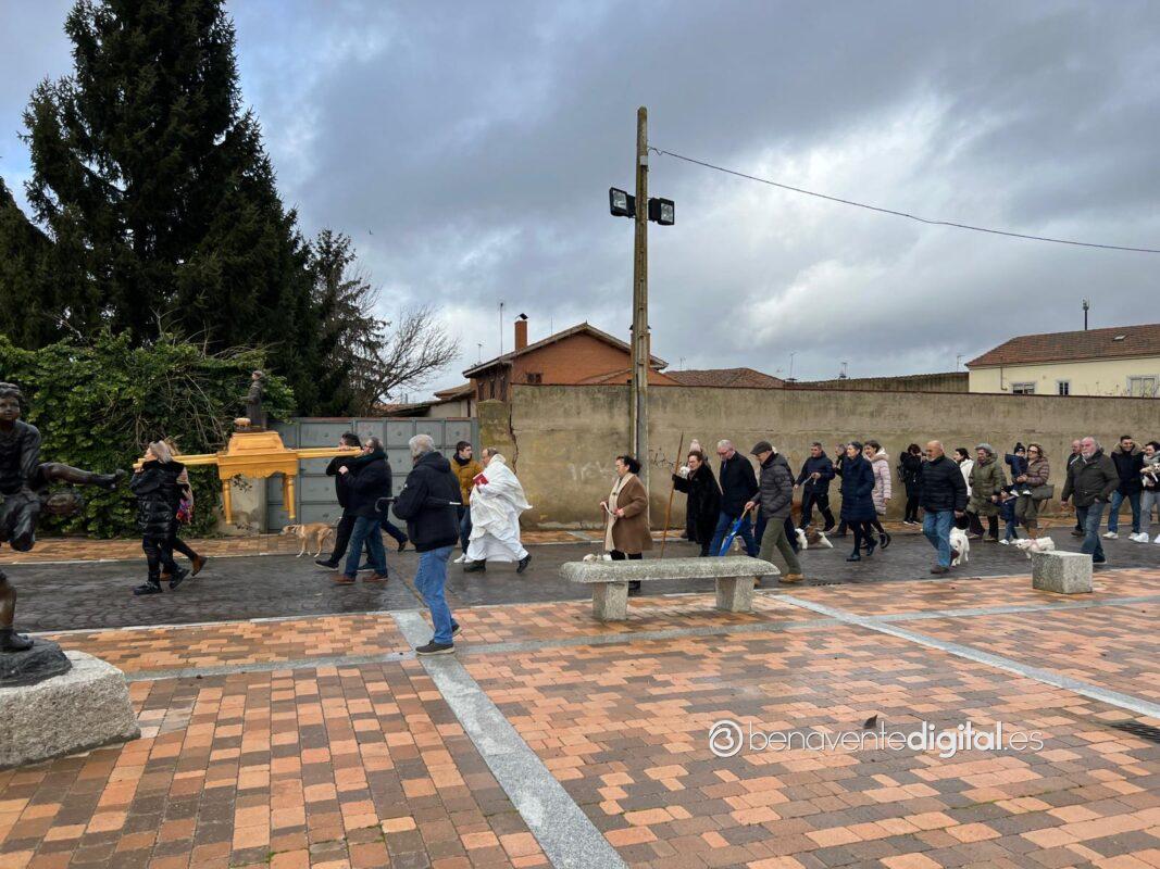 Los vecinos del pueblo que se acercaron en este mediodía hasta el templo, pese al mal tiempo, encaminaron la procesión alrededor de la iglesia con la imagen del santo protector de los animales habiendo recibido primeramente por parte del párroco el agua bendita paraa los animales allí presentes.