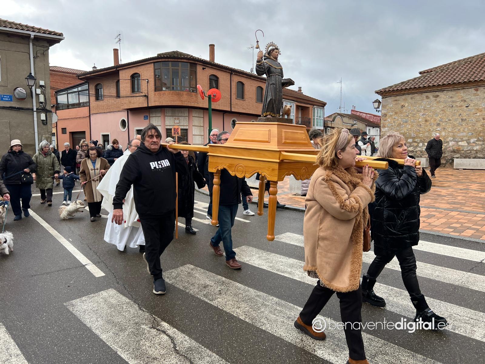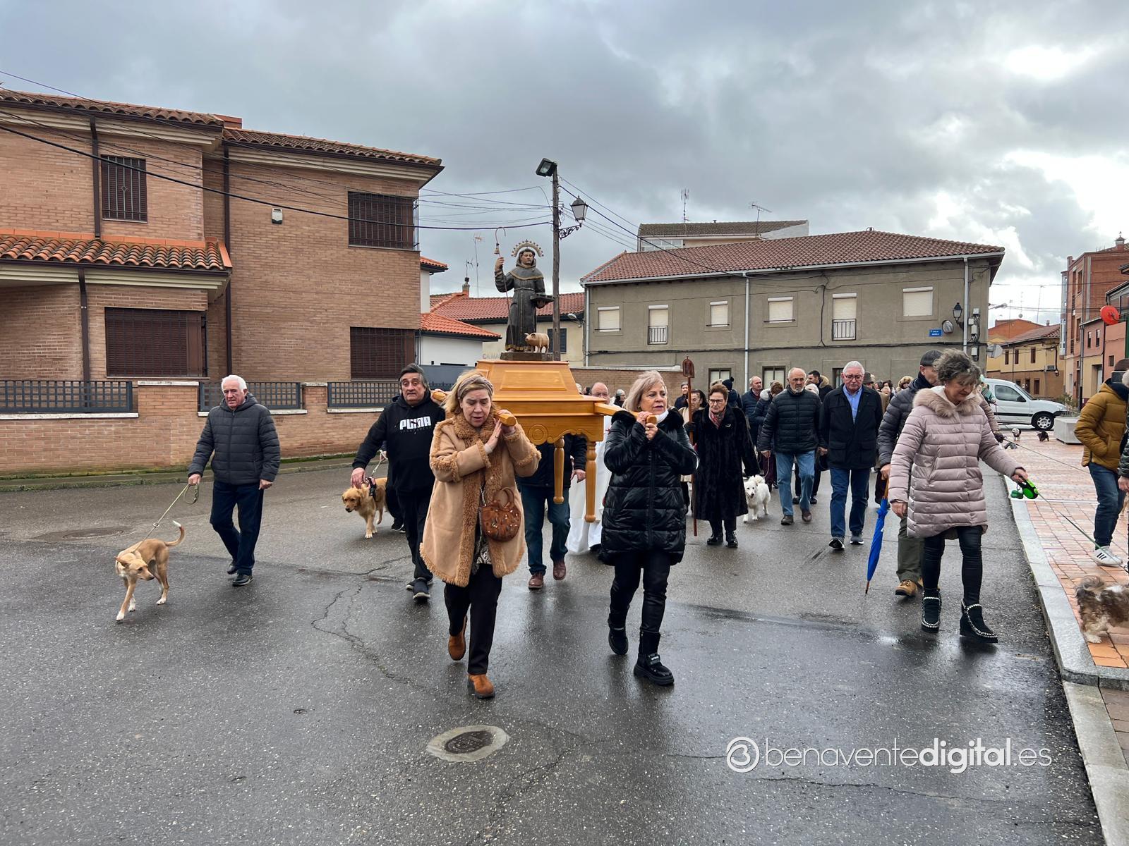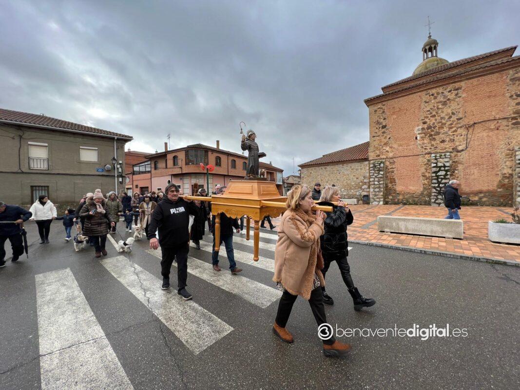 Los vecinos del pueblo que se acercaron en este mediodía hasta el templo, pese al mal tiempo, encaminaron la procesión alrededor de la iglesia con la imagen del santo protector de los animales habiendo recibido primeramente por parte del párroco el agua bendita paraa los animales allí presentes.
