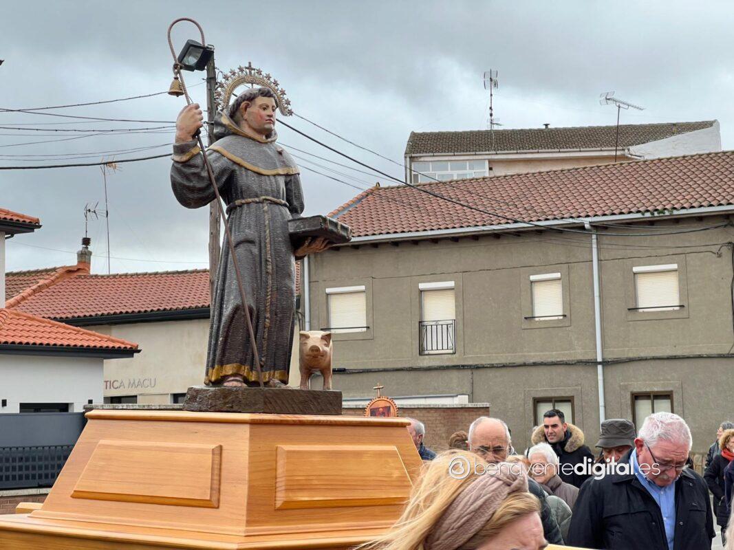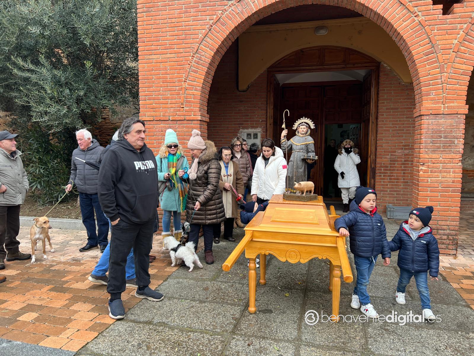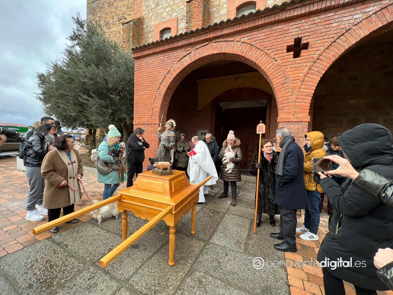 Los vecinos del pueblo que se acercaron en este mediodía hasta el templo, pese al mal tiempo, encaminaron la procesión alrededor de la iglesia con la imagen del santo protector de los animales habiendo recibido primeramente por parte del párroco el agua bendita paraa los animales allí presentes.