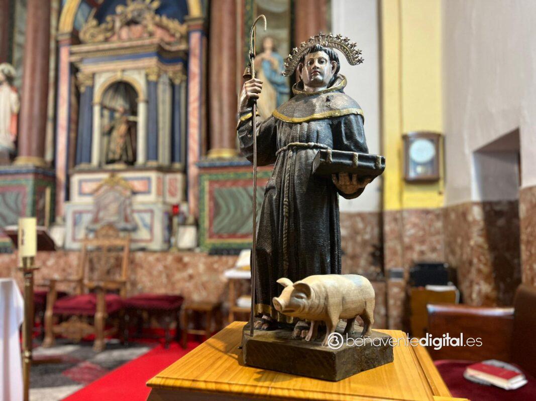 El Día de San Antón no solo está dedicado a los perros sino a todas las especies sin ninguna distinción.. San Antón Abad fue un eremita egipcio que vivió en el siglo IV y destacó por su gran cariño hacia los animales. Siempre se le representa vestido con su hábito de monje y con un cerdo a sus pies. Esta imagen ha presidido hoy el altar de la iglesia de Santa Cristina convirtiéndose un año más en el lugar de encuentro de las mascotas del pueblo.