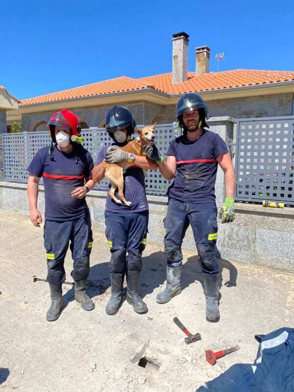 Trasladados hasta el lugar, se comprueba como efectivamente en el tubo de unos 50 metros de longitud, se encuentra un perro que no puede avanzar ni retroceder, por lo que, tras practicar un agujero a modo de cata para salvaguardar la integridad del animal, se procede a realizar una abertura en el hormigón mediante medios mecánicos y herramientas que tras una hora y media, permiten rescatar al animal ileso y devolverlo a sus propietarios sumamente agradecidos