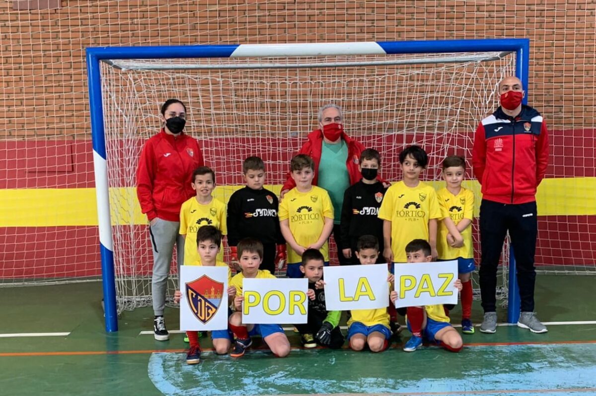 Esta tarde en el polideportivo La Rosaleda, los más pequeños del CD Benavente han querido enviar un mensaje de «No a la guerra» y «Por la paz» pidiendo a los mayores que no se peleen, que hay que vivir en paz.