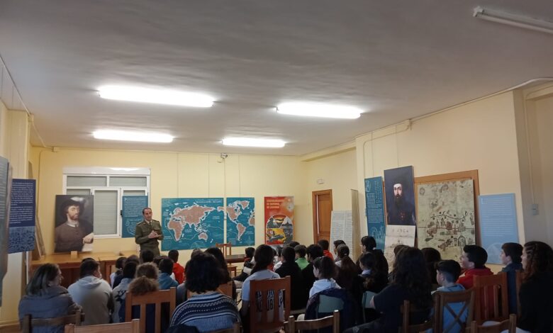 La charla fue impartida por el coronel Vicente González Martín, subdelegado de Defensa, quien se encargó de explicar a los alumnos las aventuras de este grandioso viaje. Los escolares fueron obsequiados con varios regalos.
