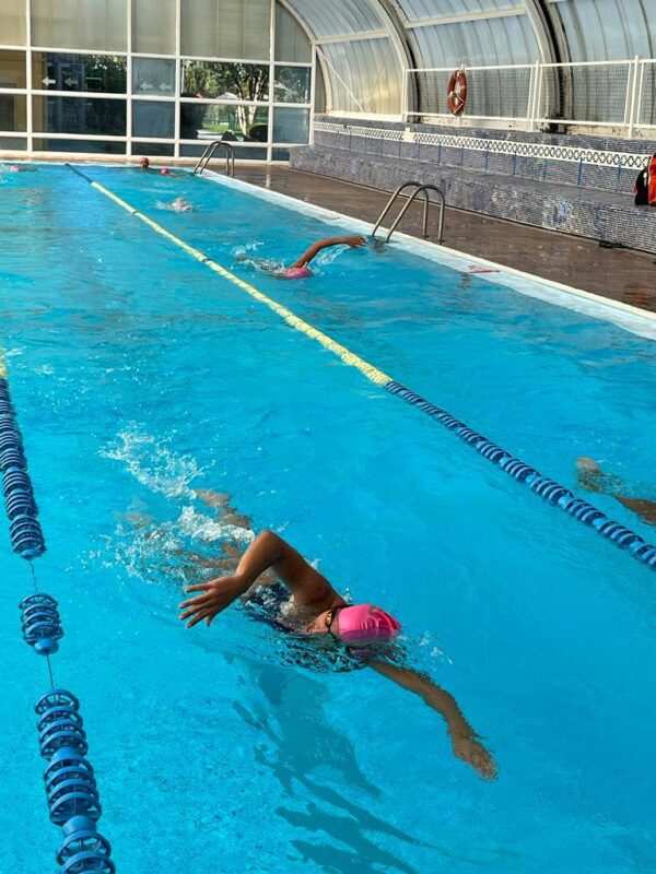Con un donativo de 5€ te llevarás un gorro de piscina conmemorativo, en el que lleva grabado el lema «Vida» y podrás nadar para sumar los metros solidarios que quieras.