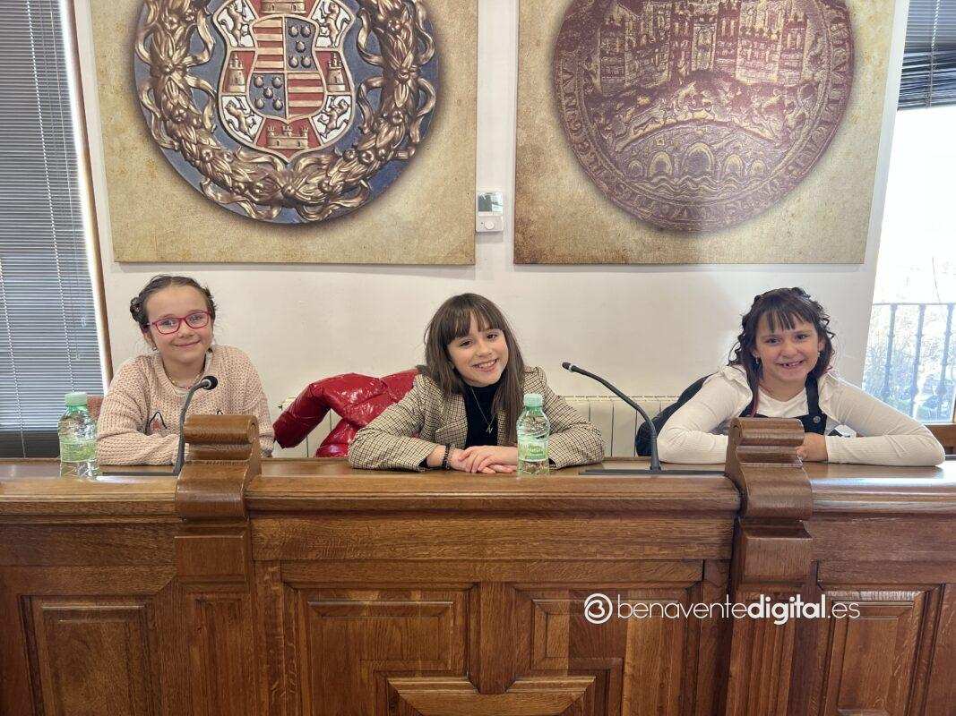 Las representantes de la Infancia son: Marina García, Noa Blanco y Alba García, todas ellas pertenecientes al colegio Virgen de la Vega de Benavente.
