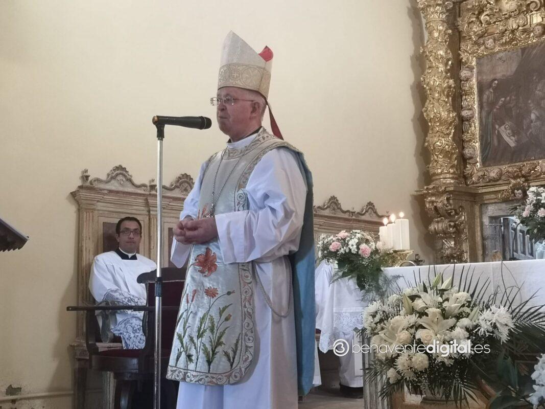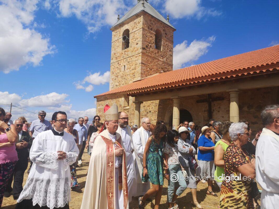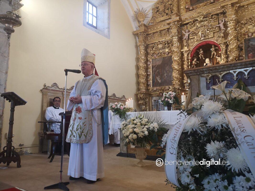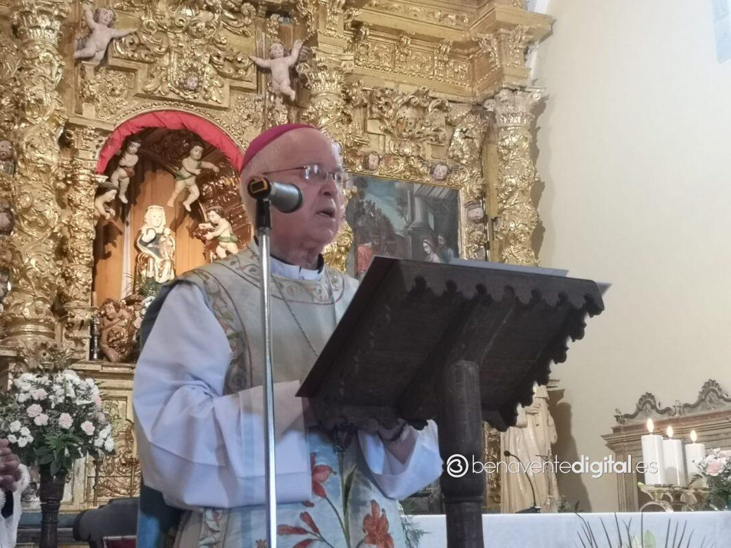 El prelado zamorano, hijo ilustre de Manganeses de la Polvorosa, presidía esta mañana la celebración religiosa en el santuario de Nuestra Señora la Virgen del Campo en Rosinos de Vidriales. La denominada romería de la Virgen del Campo que venía a culminar el novenario dedicado en cada jornada a las parroquias vidrialesas.