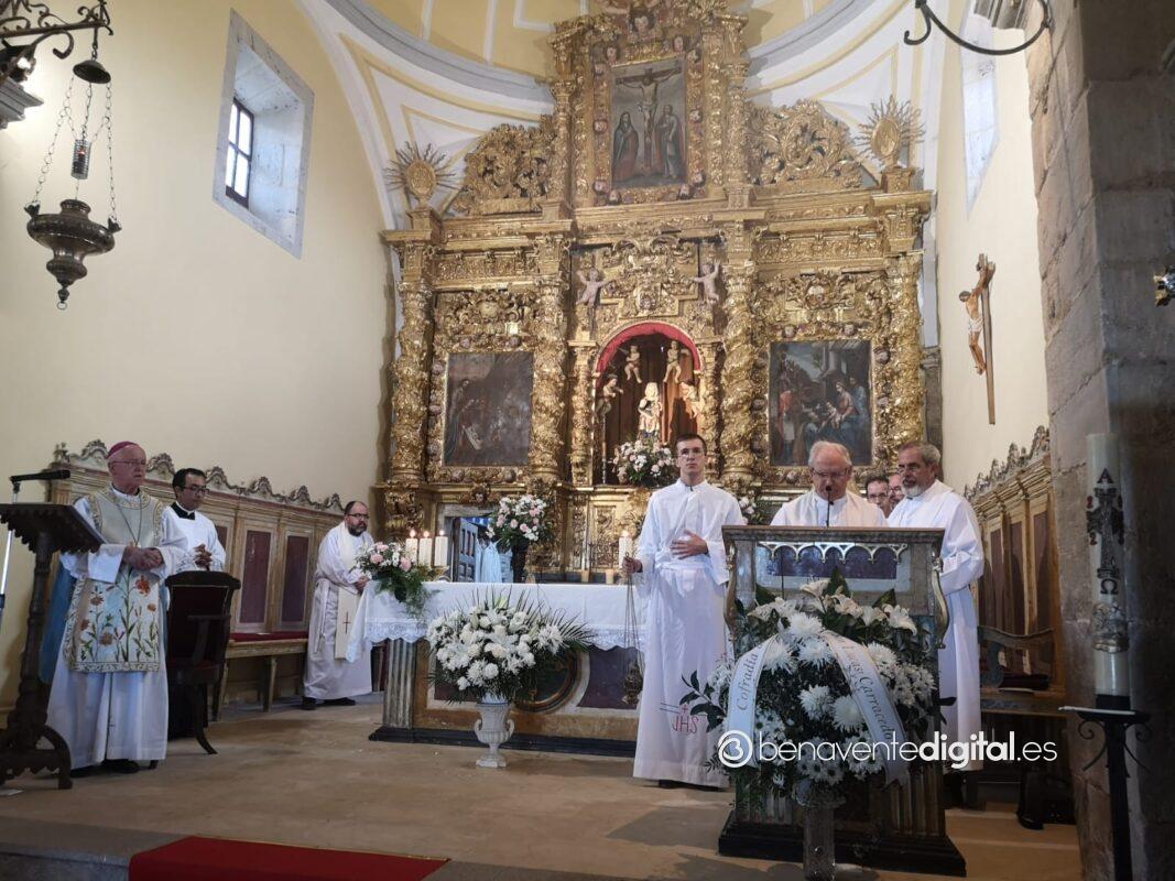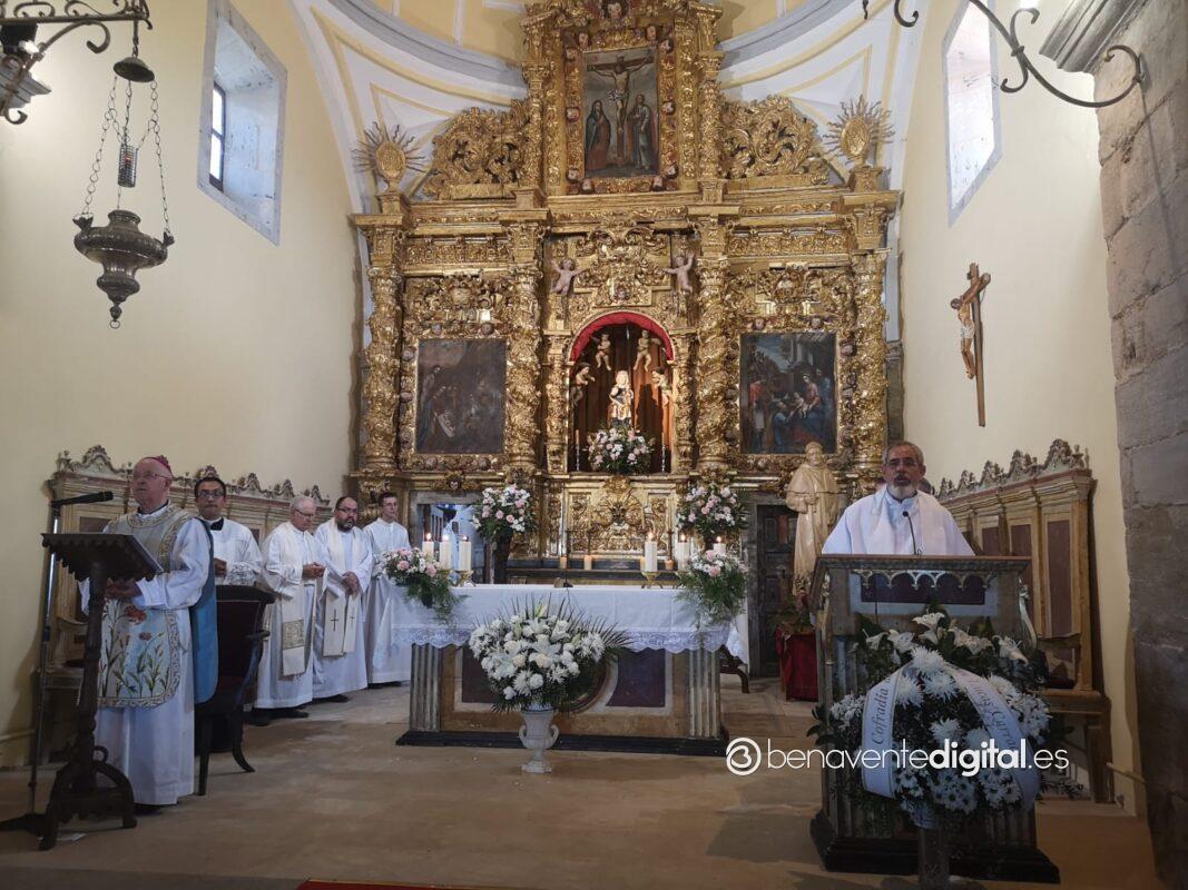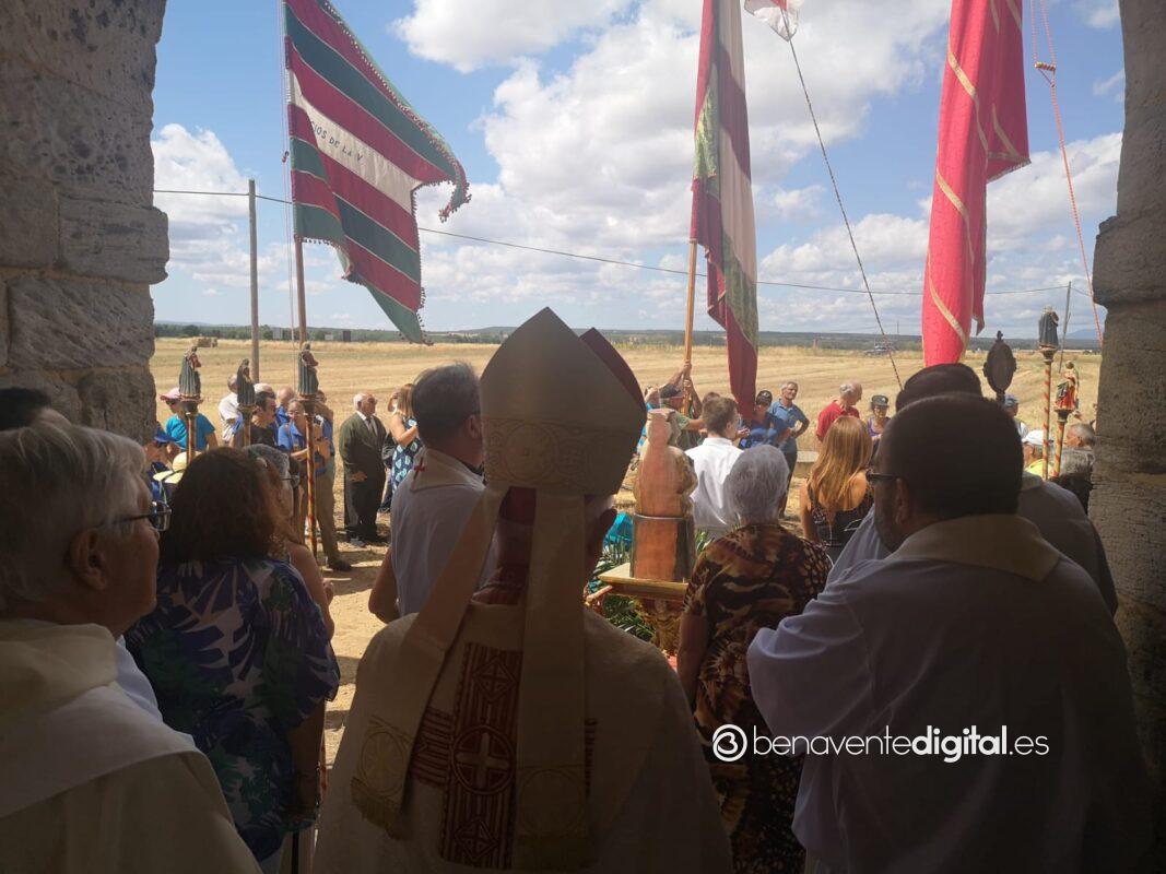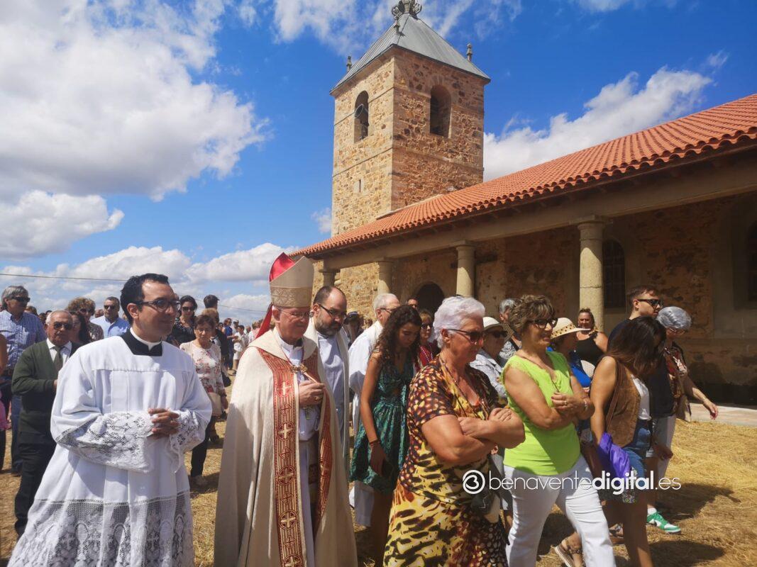 El prelado zamorano, hijo ilustre de Manganeses de la Polvorosa, presidía esta mañana la celebración religiosa en el santuario de Nuestra Señora la Virgen del Campo en Rosinos de Vidriales. La denominada romería de la Virgen del Campo que venía a culminar el novenario dedicado en cada jornada a las parroquias vidrialesas.