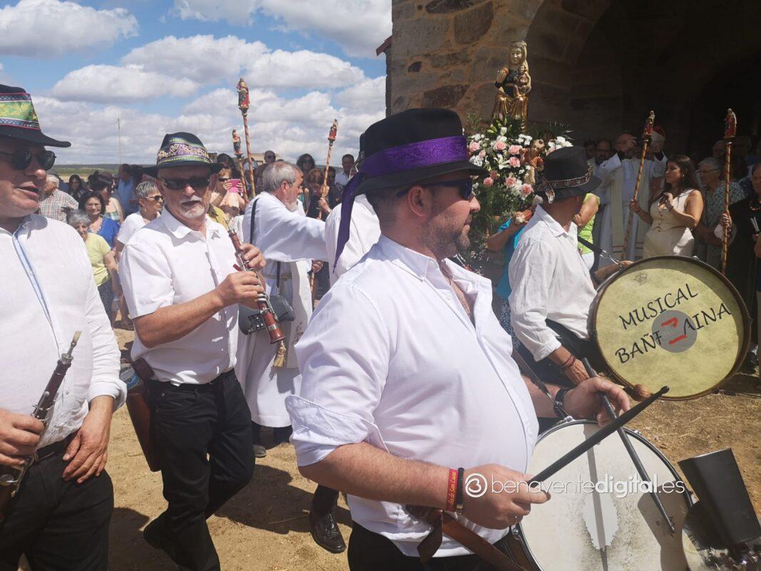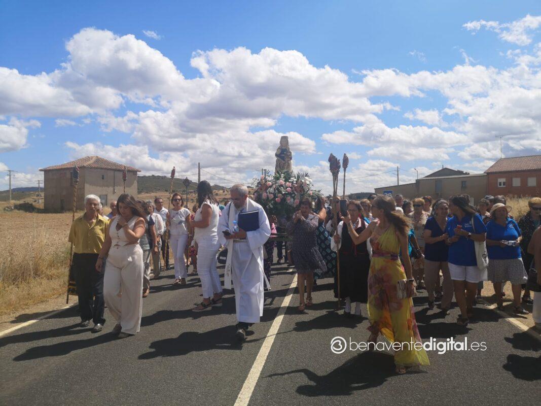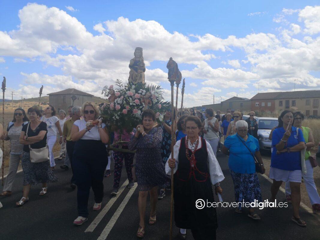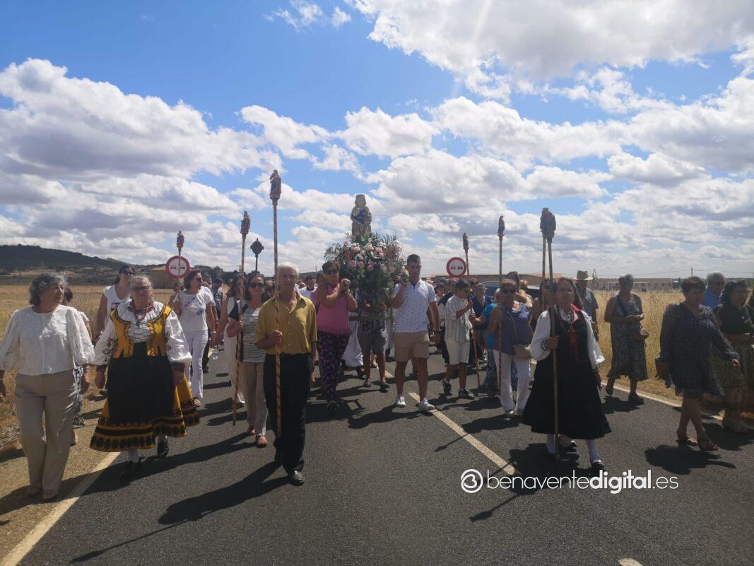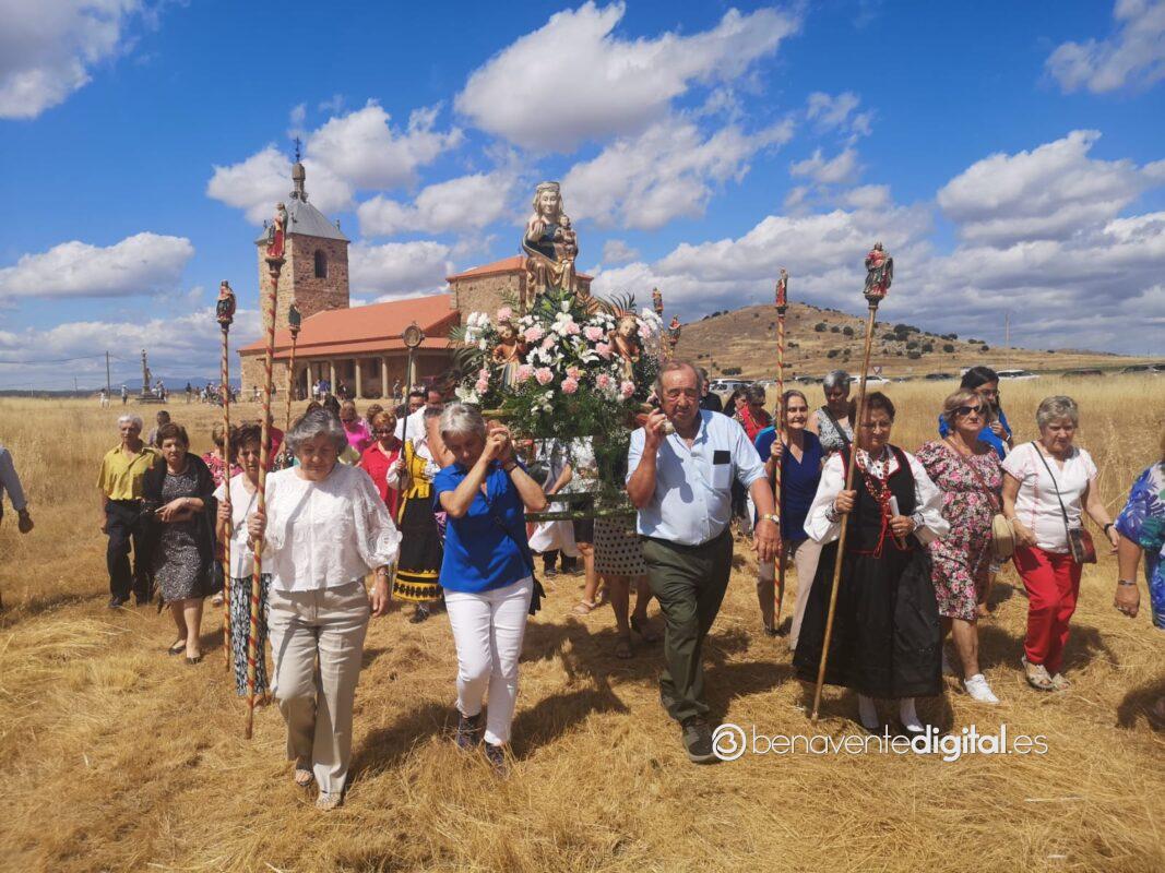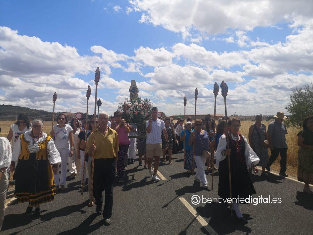 La Señora aguardaba bajo el pórtico de la torre del santuario y se iniciaba el desfile con la imagen de los dos patronos del Valle de Vidriales, Nuestra Señora la Virgen del Campo y San Lucas del Espíritu Santo. Los sones musicales de Bañezaina y de Fole Feroz animaron la comitiva entre rezos y cánticos.