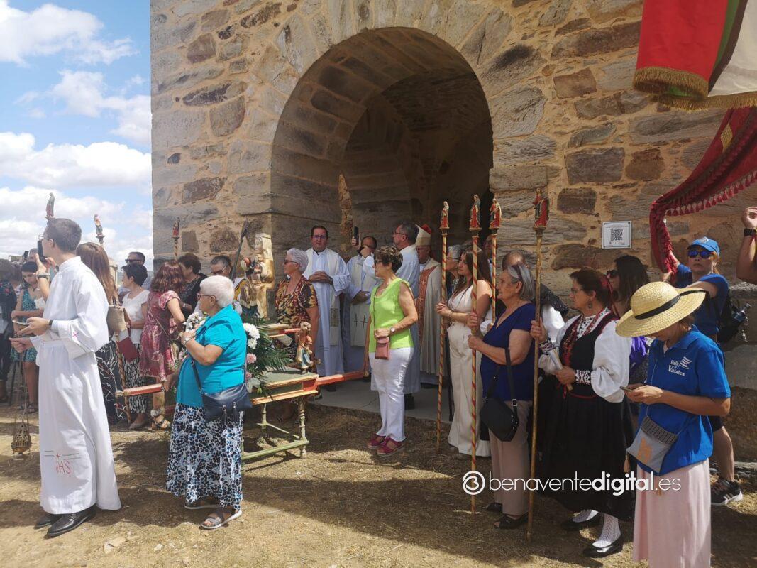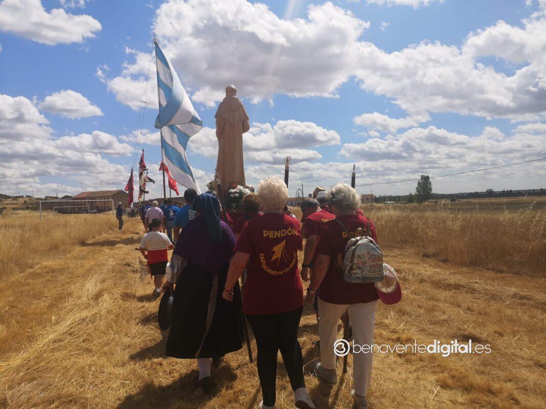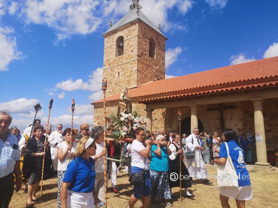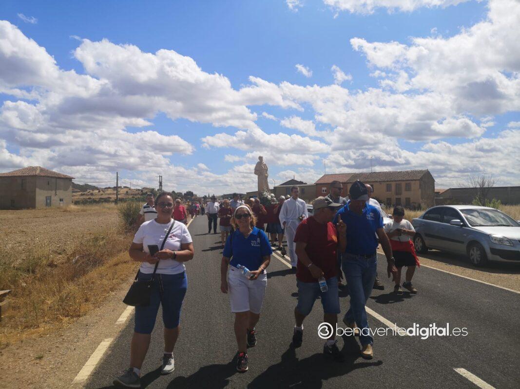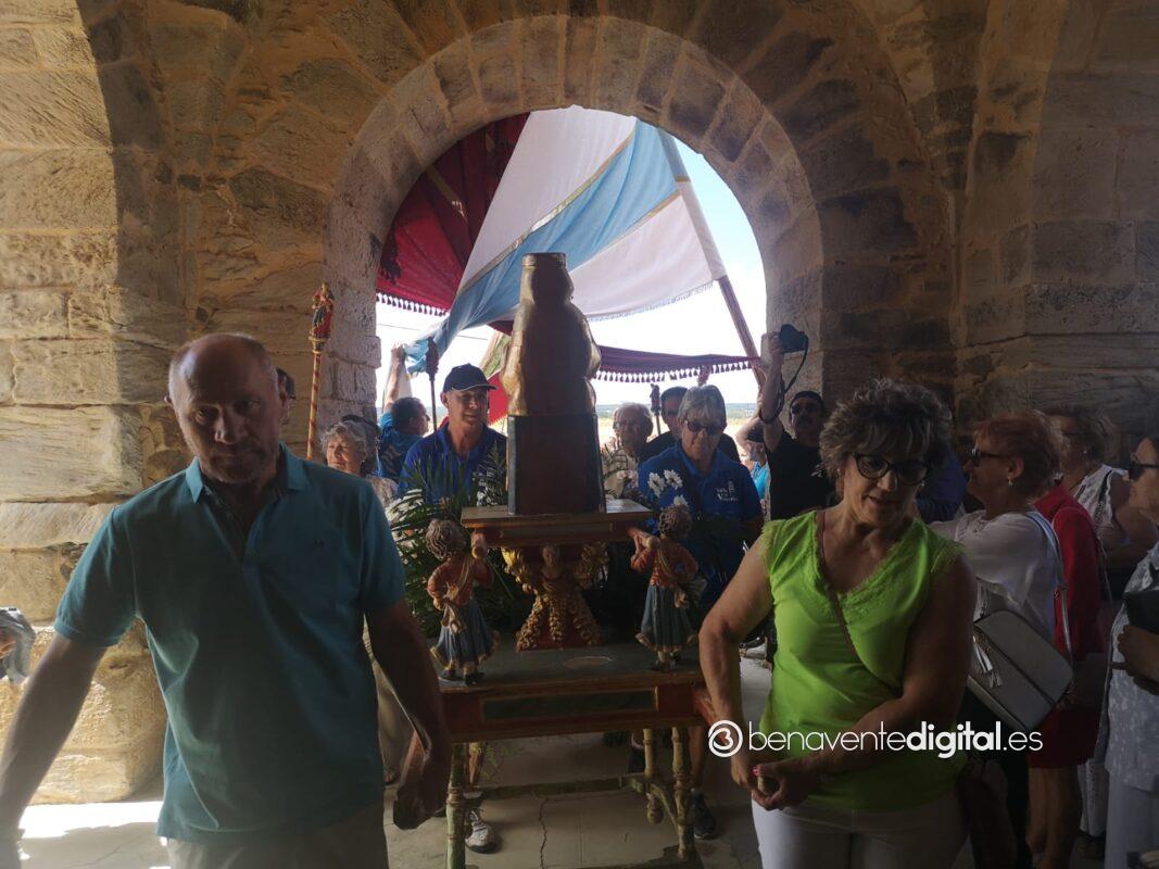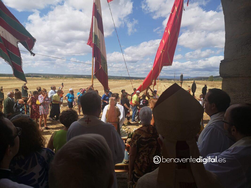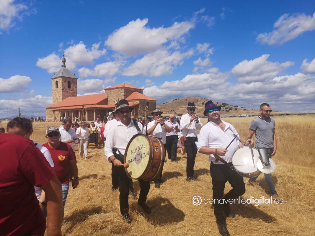 La Señora aguardaba bajo el pórtico de la torre del santuario y se iniciaba el desfile con la imagen de los dos patronos del Valle de Vidriales, Nuestra Señora la Virgen del Campo y San Lucas del Espíritu Santo. Los sones musicales de Bañezaina y de Fole Feroz animaron la comitiva entre rezos y cánticos.