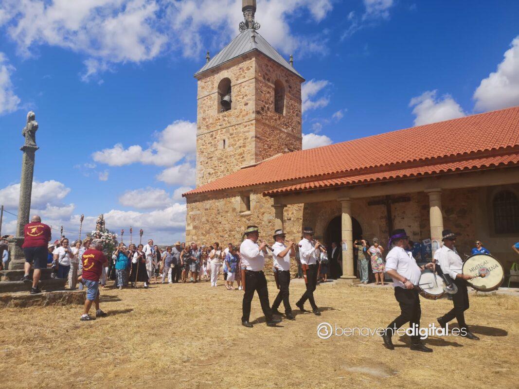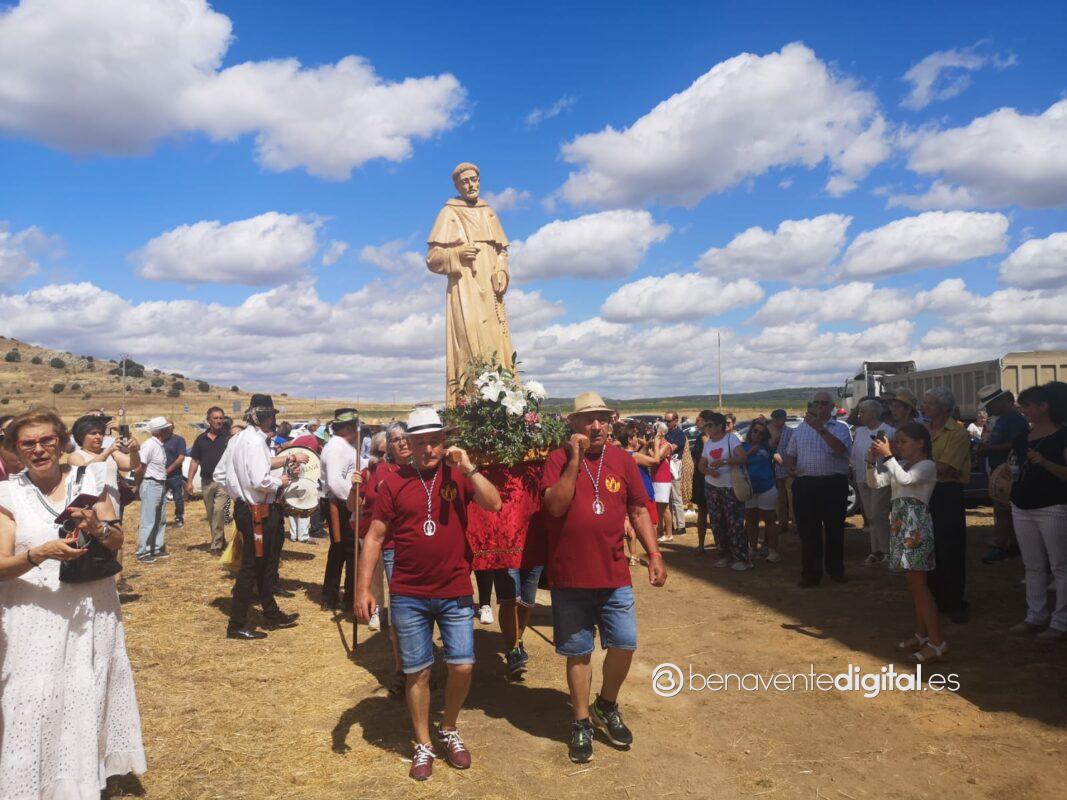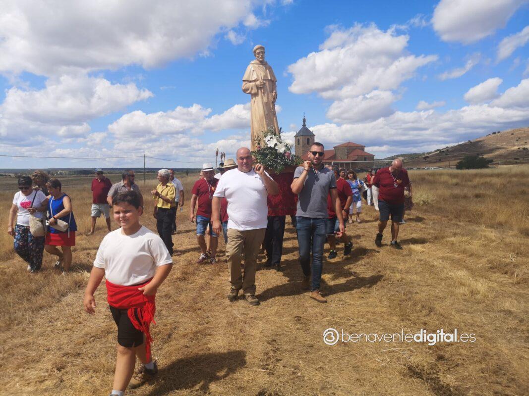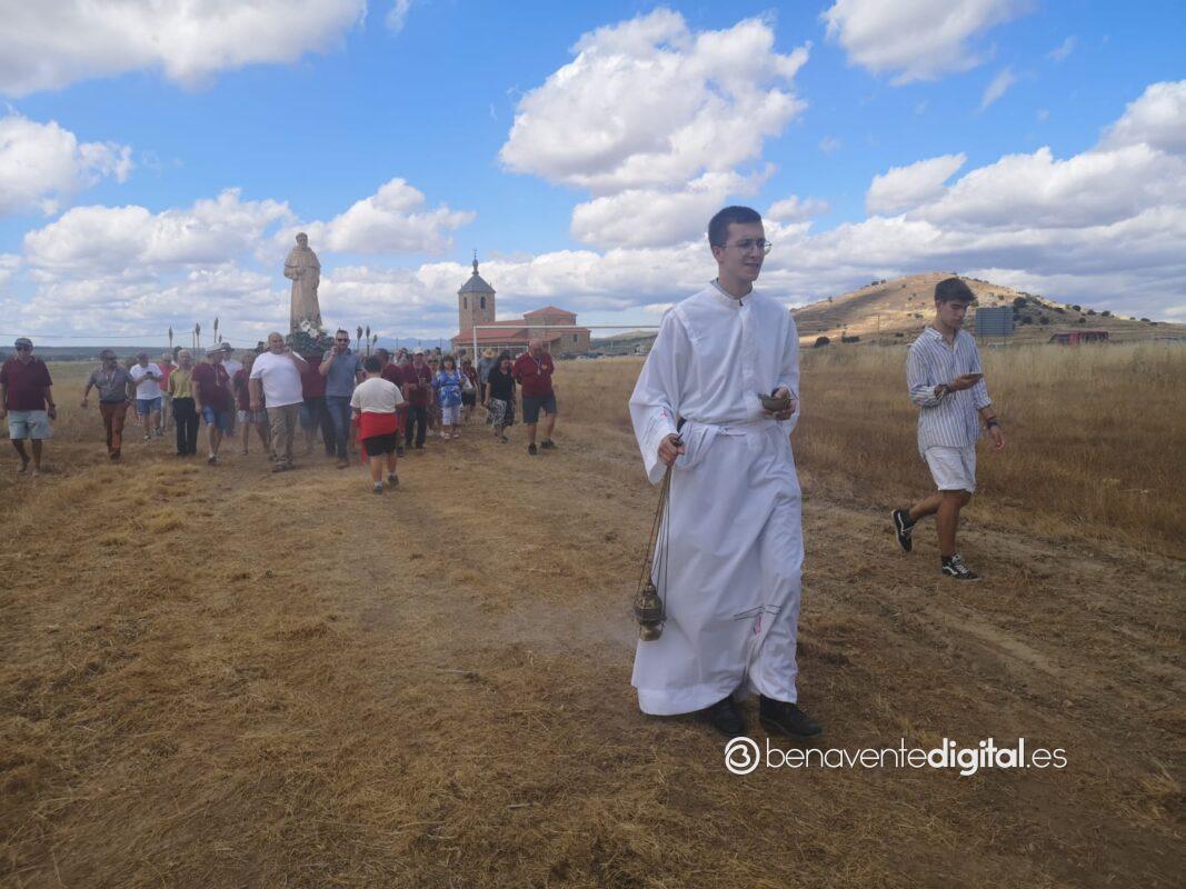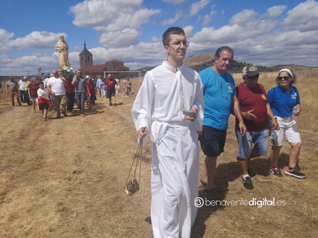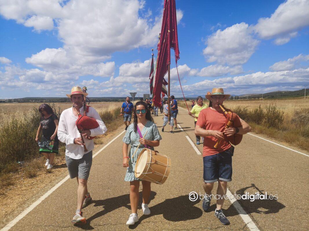 La Señora aguardaba bajo el pórtico de la torre del santuario y se iniciaba el desfile con la imagen de los dos patronos del Valle de Vidriales, Nuestra Señora la Virgen del Campo y San Lucas del Espíritu Santo. Los sones musicales de Bañezaina y de Fole Feroz animaron la comitiva entre rezos y cánticos.