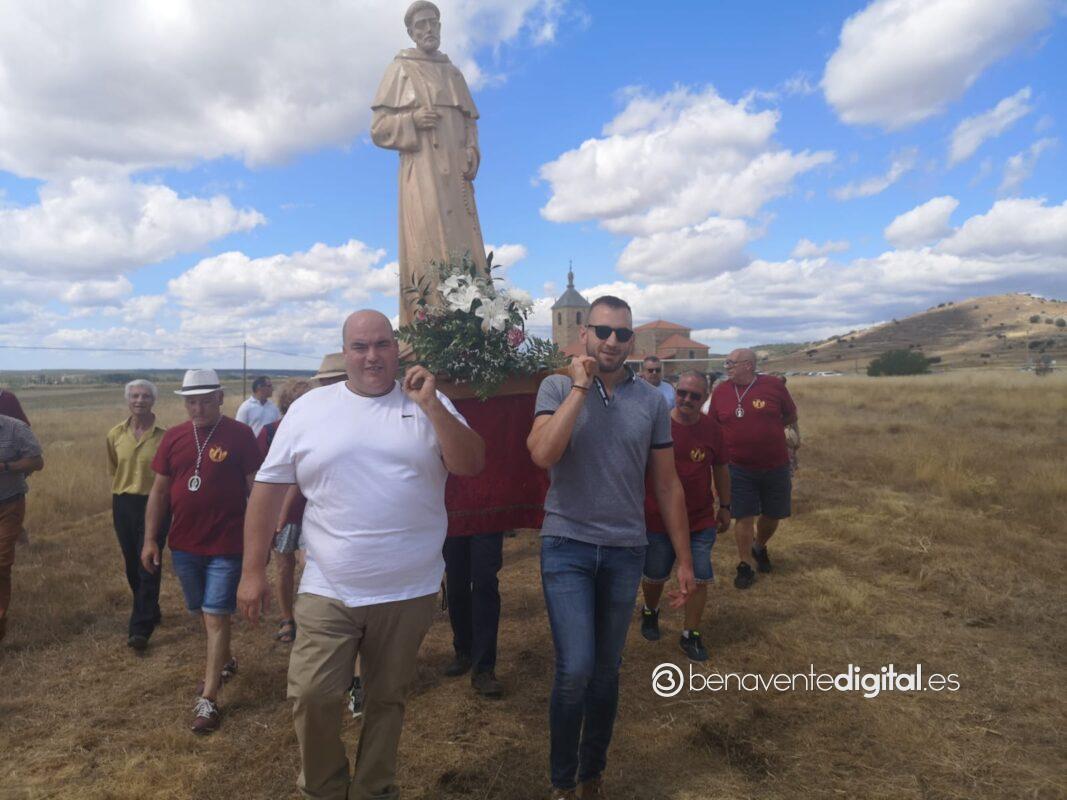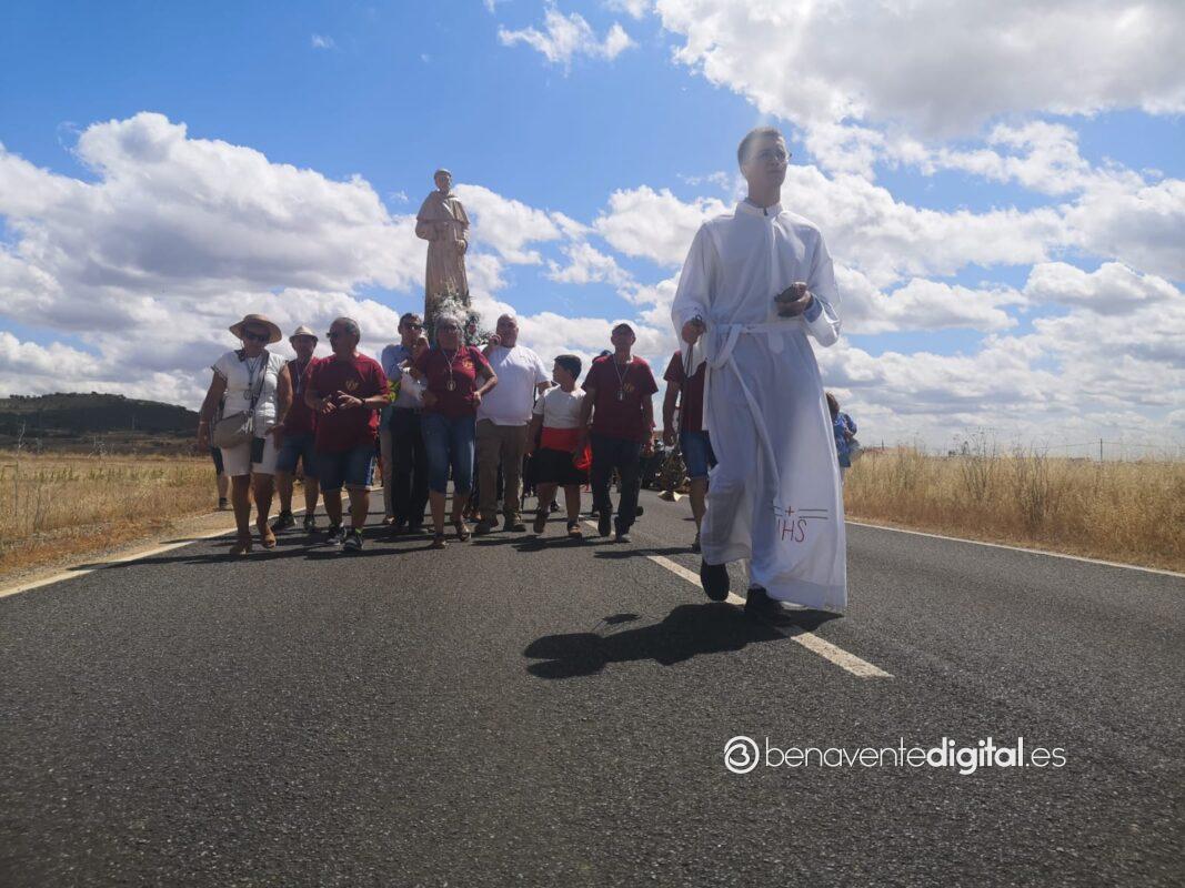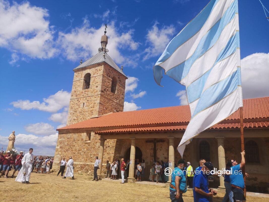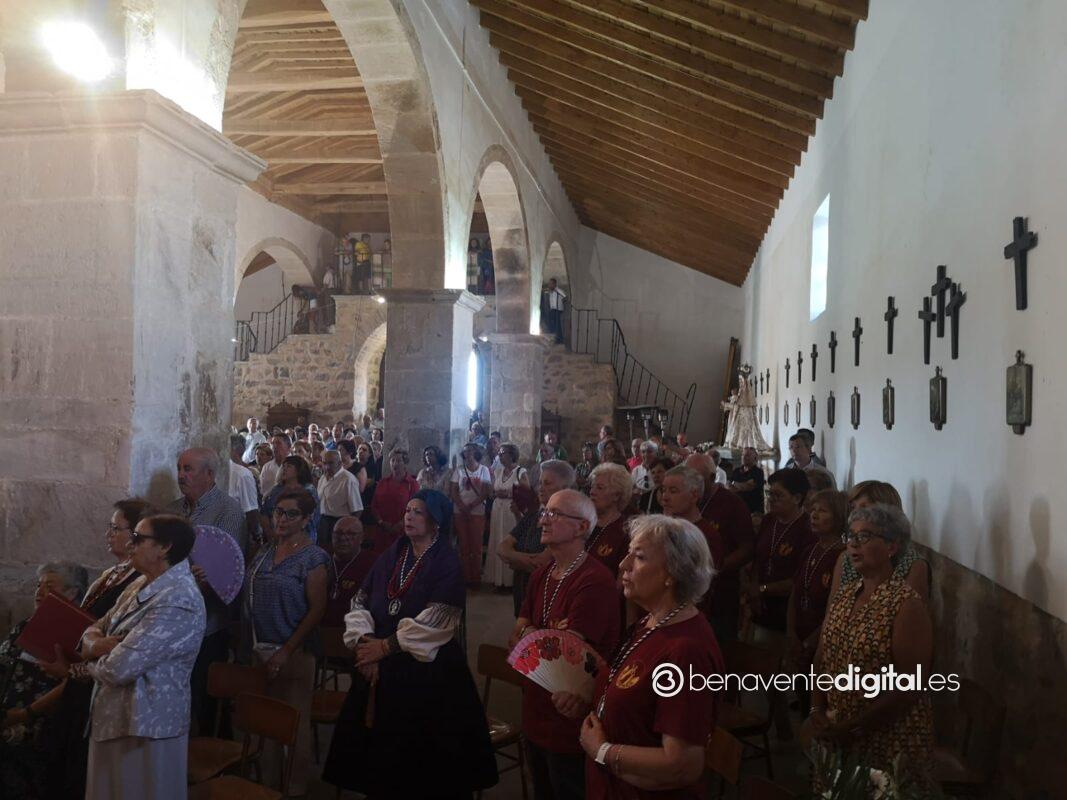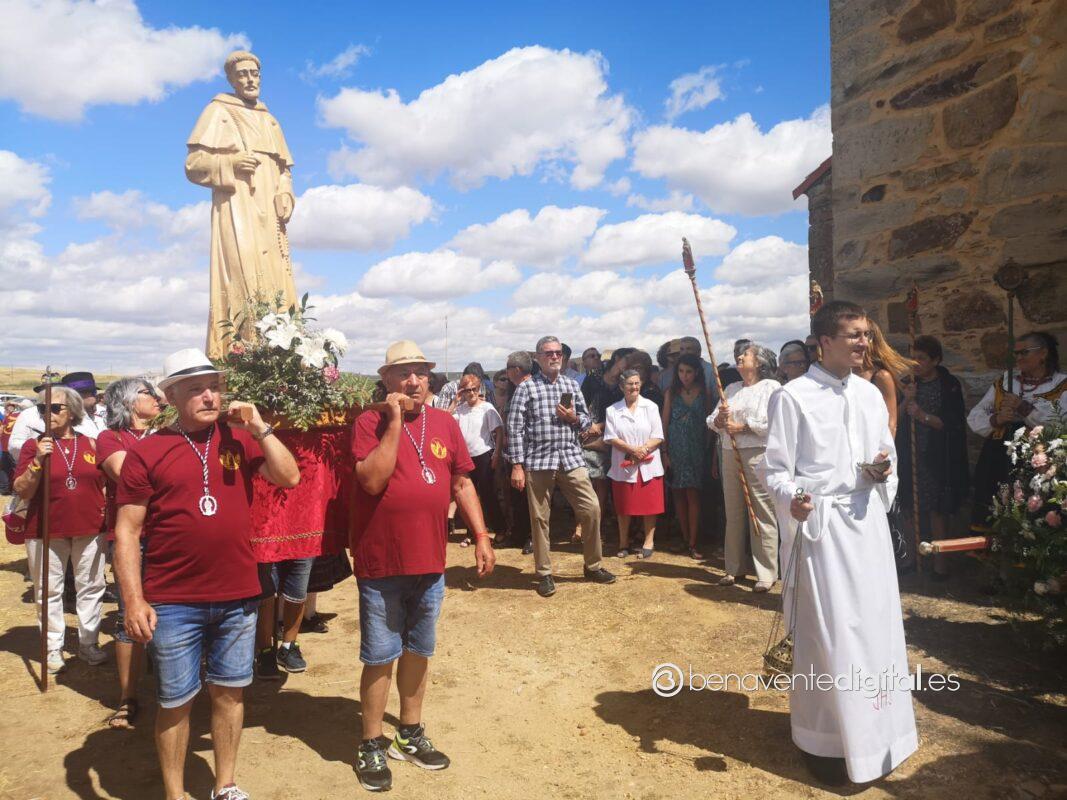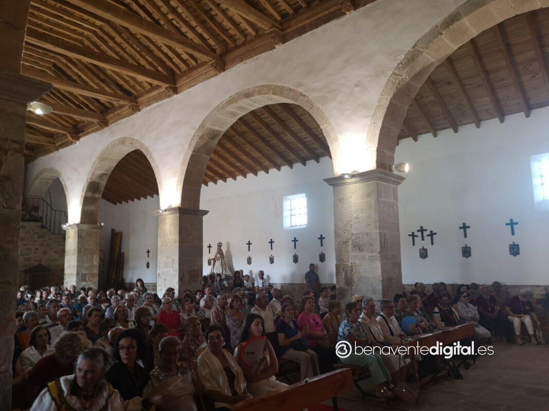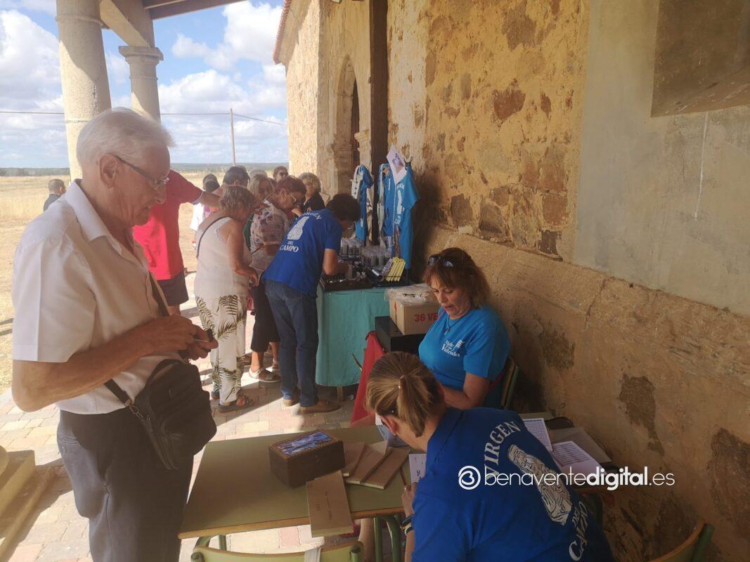 La Señora aguardaba bajo el pórtico de la torre del santuario y se iniciaba el desfile con la imagen de los dos patronos del Valle de Vidriales, Nuestra Señora la Virgen del Campo y San Lucas del Espíritu Santo. Los sones musicales de Bañezaina y de Fole Feroz animaron la comitiva entre rezos y cánticos.