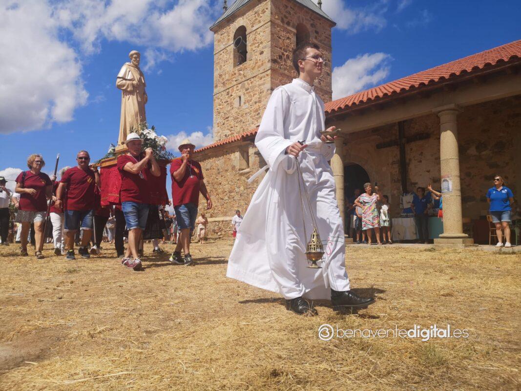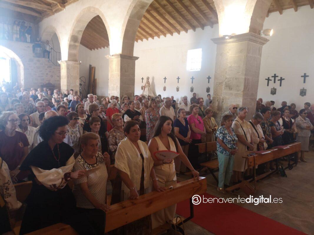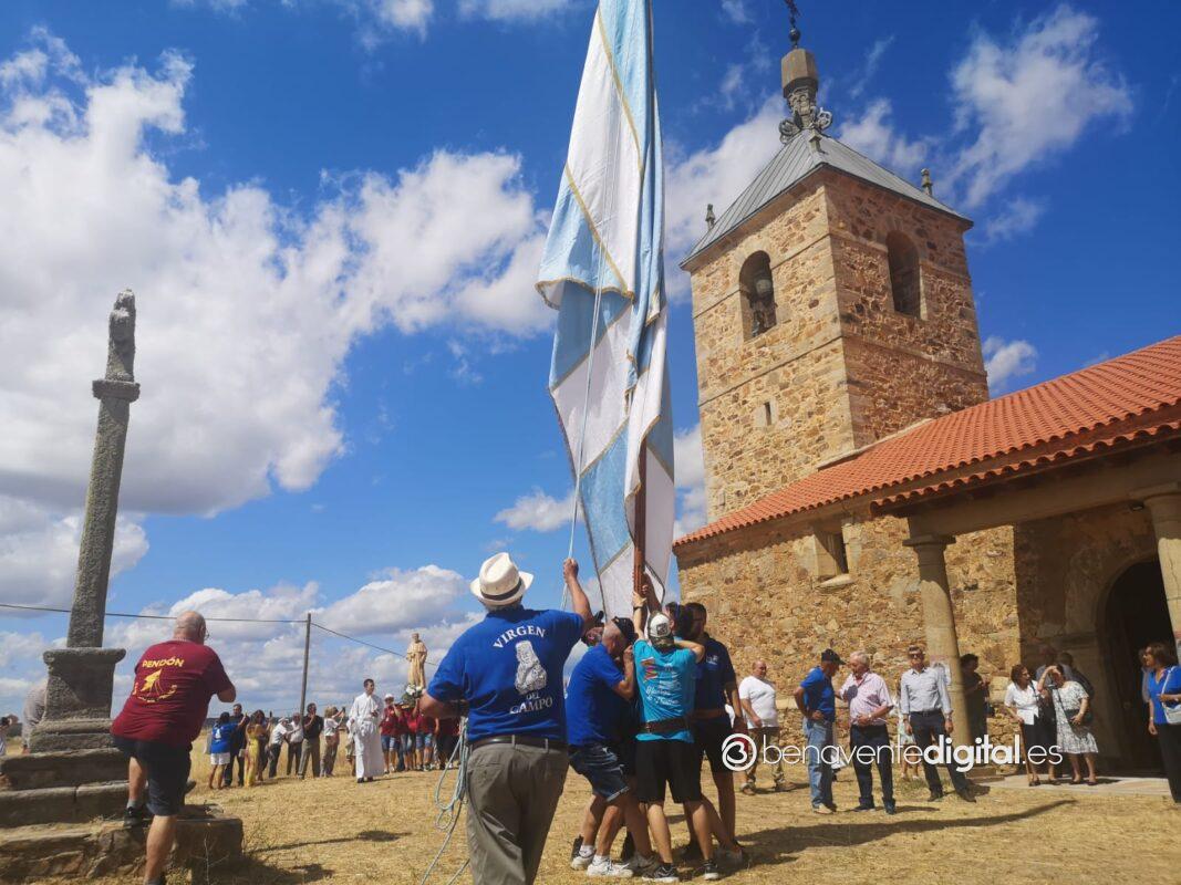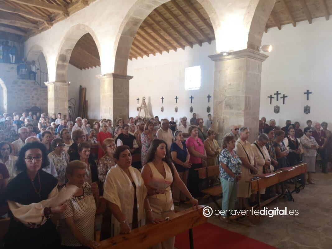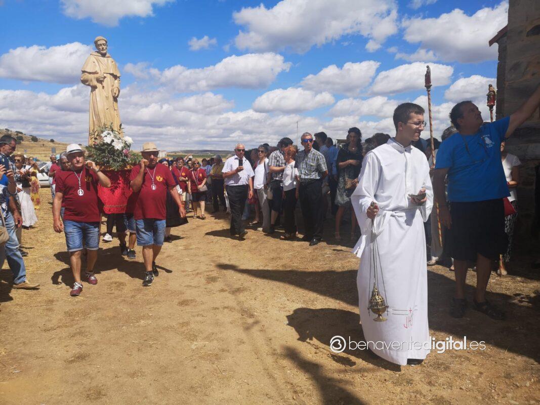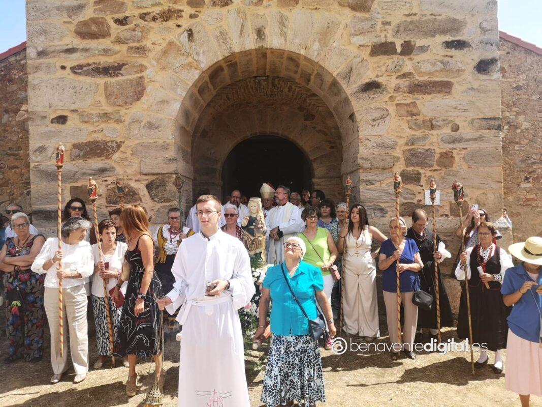 La Señora aguardaba bajo el pórtico de la torre del santuario y se iniciaba el desfile con la imagen de los dos patronos del Valle de Vidriales, Nuestra Señora la Virgen del Campo y San Lucas del Espíritu Santo. Los sones musicales de Bañezaina y de Fole Feroz animaron la comitiva entre rezos y cánticos.