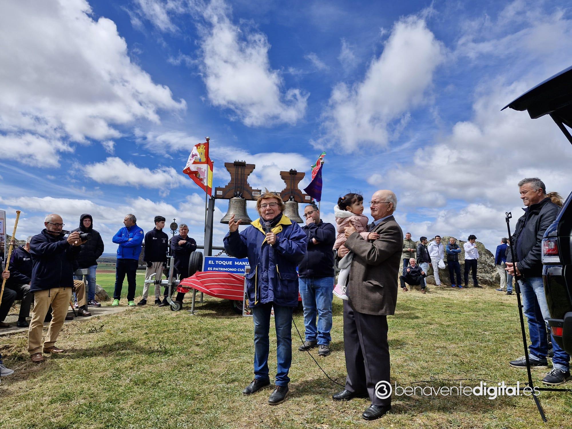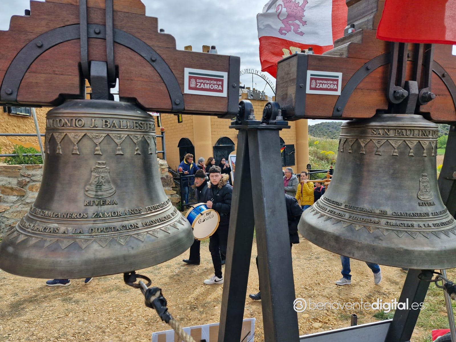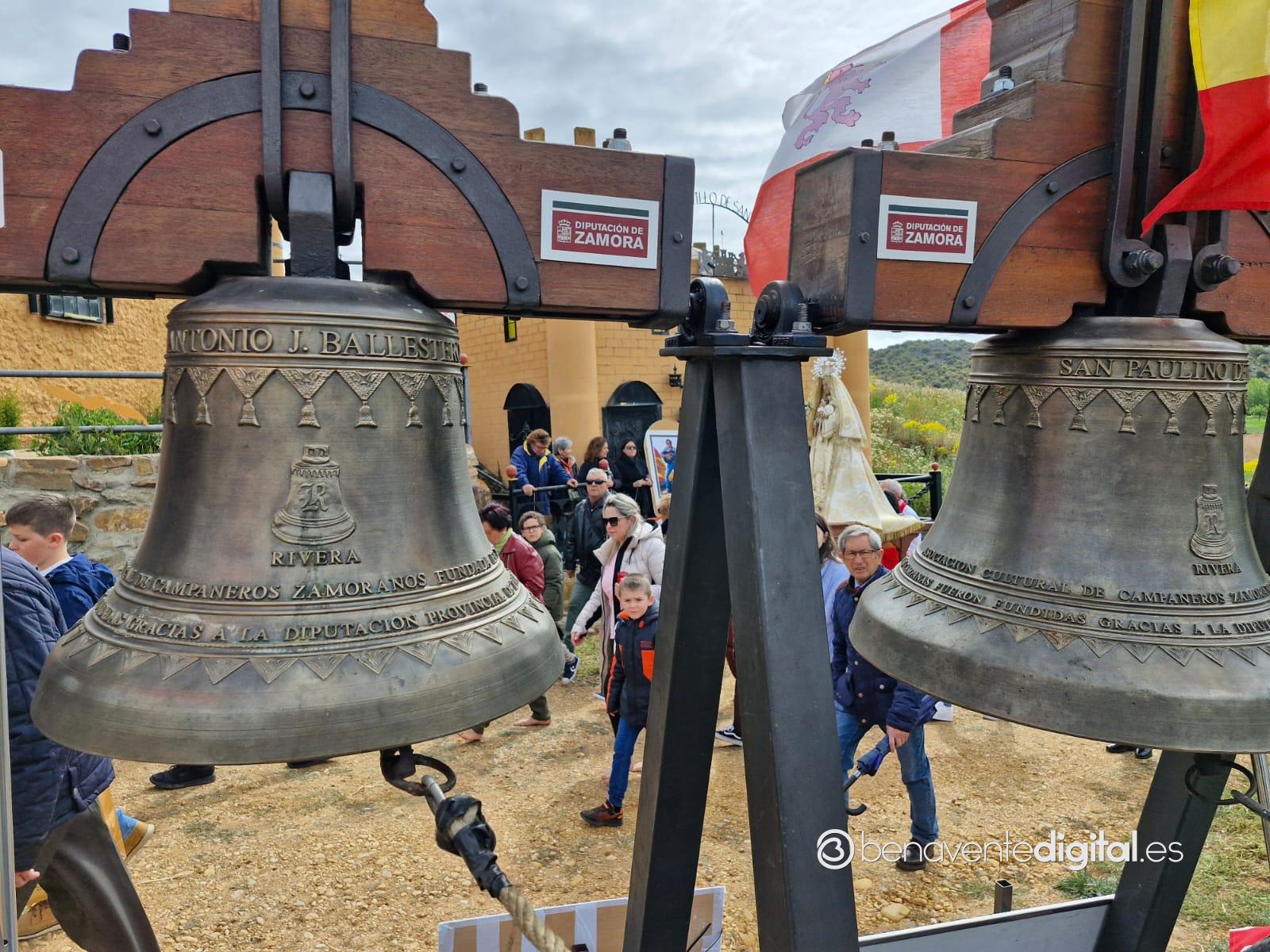 Y fue este mediodía, cuando los repiques y los diferentes toques, en una exhibición personalizada de los miembros de la asociación de campaneros zamoranos, se lanzaron a los cuatro vientos extendiéndose por la fértil vega del arroyo Almucera e, incluso, traspasando cerros y altiplanos.