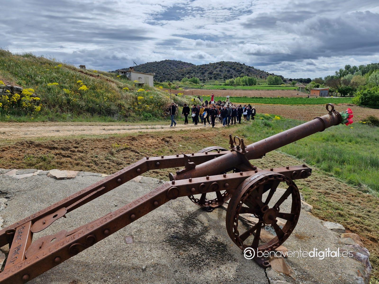 El repique de campanas desde la espadaña de la iglesia anunciaba ya la salida del desfile procesional en un itinerario por el callejero del pueblo, la carretera al Valle del Eria y el puente sobre el arroyo del Almucera. El ascenso al cerro de San Esteban venía marcado por un hito histórico como el del toque de las campanas al paso de la procesión frente a la bodega castillo del dúo Los Dos Españoles. Los sonidos de las campanas anunciaban el homenaje póstumo al artista musical y de la forja, Francisco Gallego Neira, Paco, quien antes de fallecer, el 17 de noviembre del 2022, ya venía trabajando para que las campanas sonasen por primera vez en la ermita de su querido San Esteban.