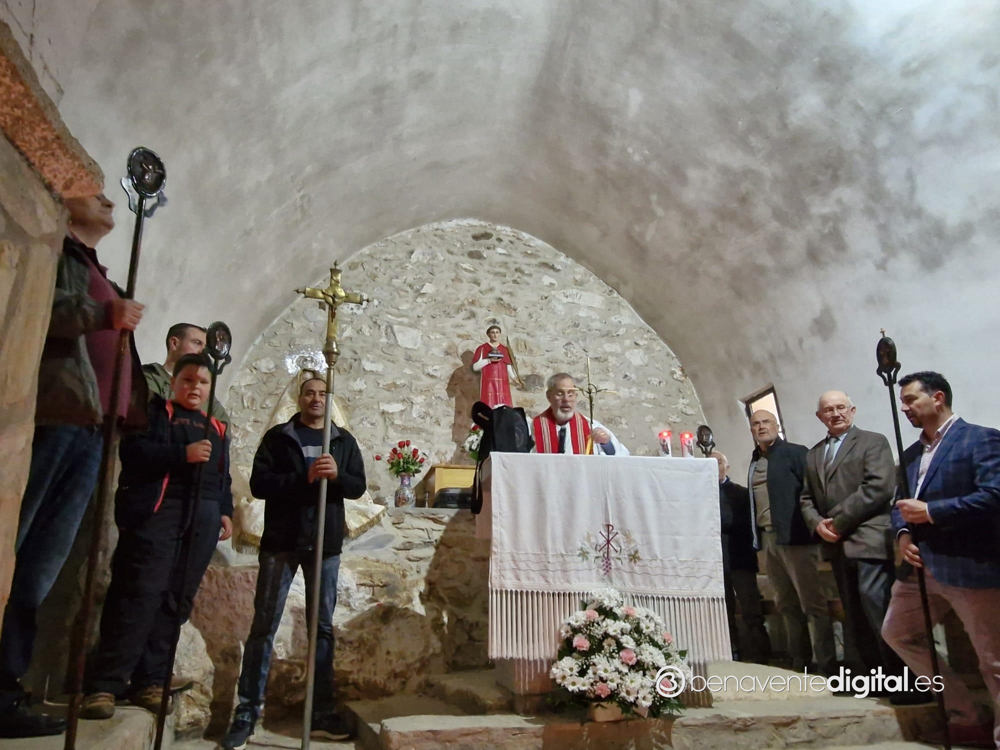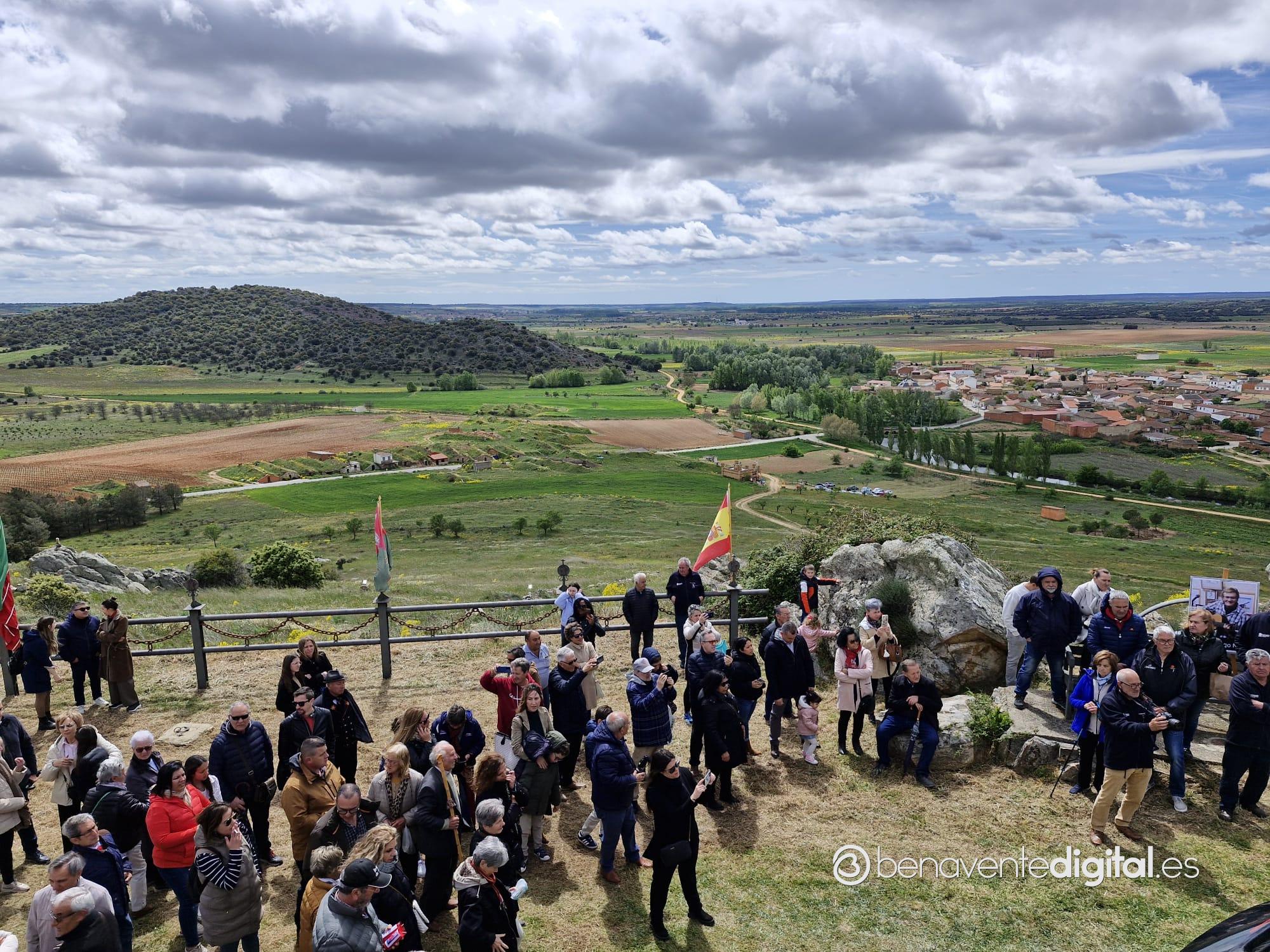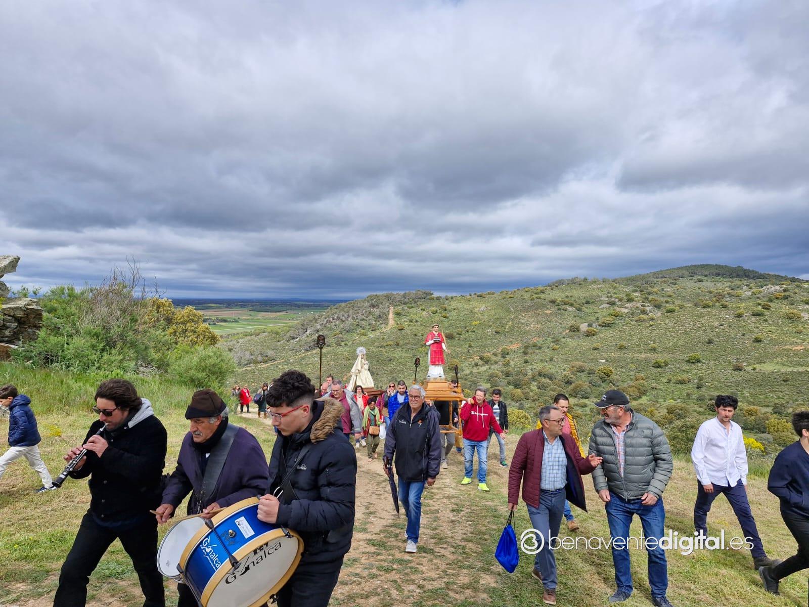 La comitiva procesional continuaba su ascenso hasta la explanada de la ermita, donde a los pies de la espadaña, el párroco Miguel Hernández bendecía la campiña. Los devotos de San Esteban celebraron la misa en su honor y al finalizar la ceremonia religiosa, la privilegiada atalaya o mirador sobre la vega del Almucera servía de escenario para una exhibición de toques de campanas. Los miembros de la asociación campaneros zamoranos rendían así tributo al artista Paco Gallego, haciendo sonar los toques más tradicionales, muchos de ellos recuperados por el activo colectivo de campaneros. Incluso el hermano del homenajeado, Isaac Gallego, del dúo Los Dos Españoles, interpretó «la Molinera» con los toques de los badajos sobre el bronce de las campanas góticas instaladas sobre el campanario móvil. Hasta el lugar se había acercado un representante de la afamada fábrica cacereña de Montehermoso, Campanas Rivera, maestros fundidores desde el siglo XIX, artistas del sonido en bronce. El lema de «Rivera me fecit», Rivera me hizo, se expandió a los cuatro vientos con el volteo de las campanas del representante de Campanas Rivera.