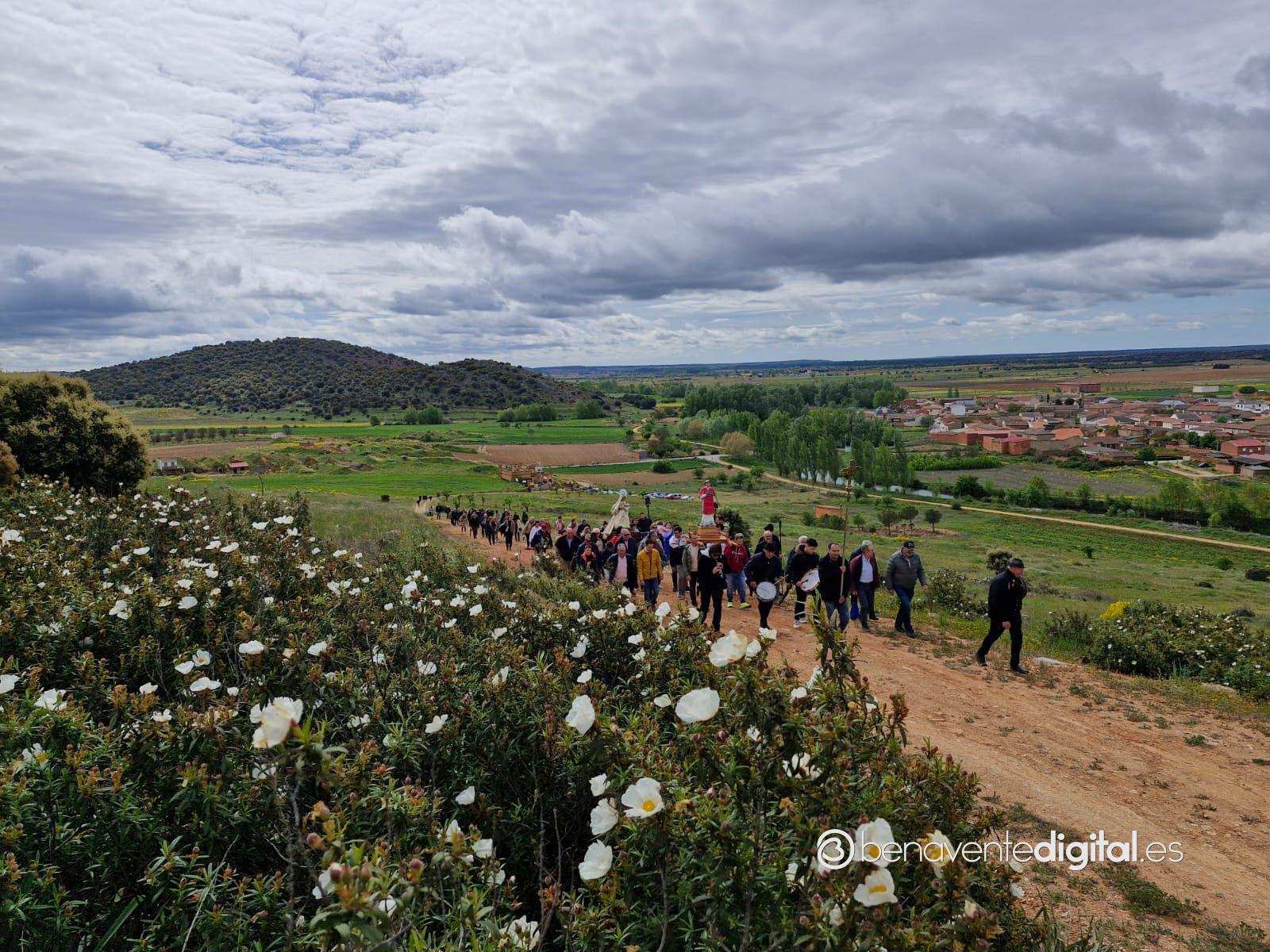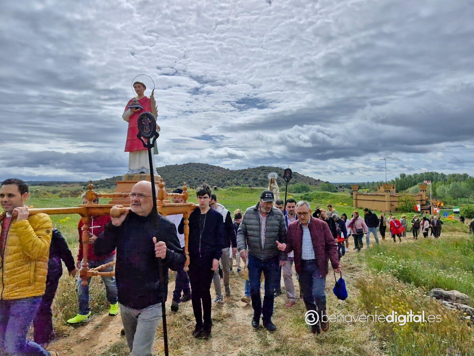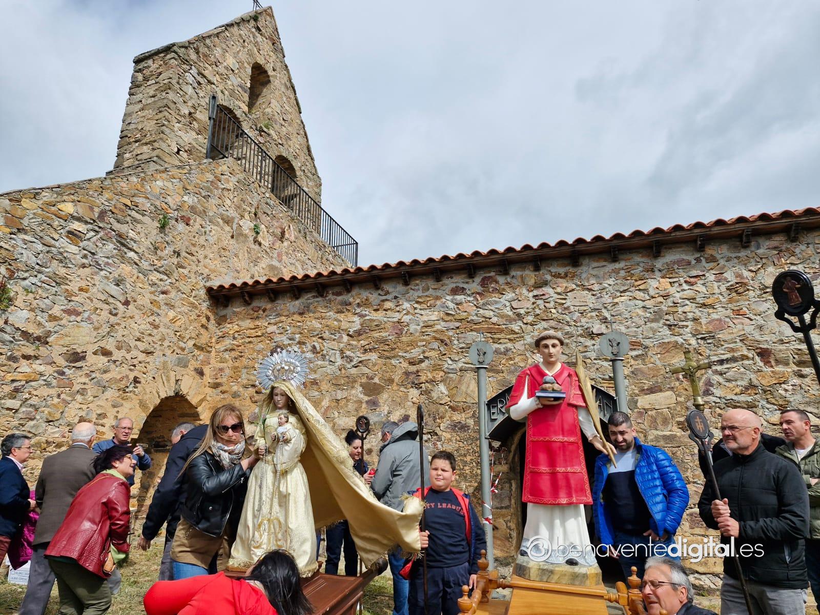 Se celebraba en Brime de Urz la fiesta del patrón San Esteban, una pequeña imagen que había sido trasladada el pasado Domingo de Pascua, desde la ermita hasta la iglesia parroquial, en el pueblo, para ser venerada más de cerca por los vecinos. Y era este sábado 4 de mayo, como manda la tradición, en el primer fin de semana del mes de las flores, cuando se procesionaba con el santo hasta su sede en la ermita. Eso sí, acompañado de la imagen de la Virgen del Rosario, los rezos de los devotos y la música de la charanga «Los Chirlos» de Domez de Alba.