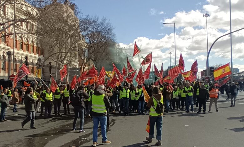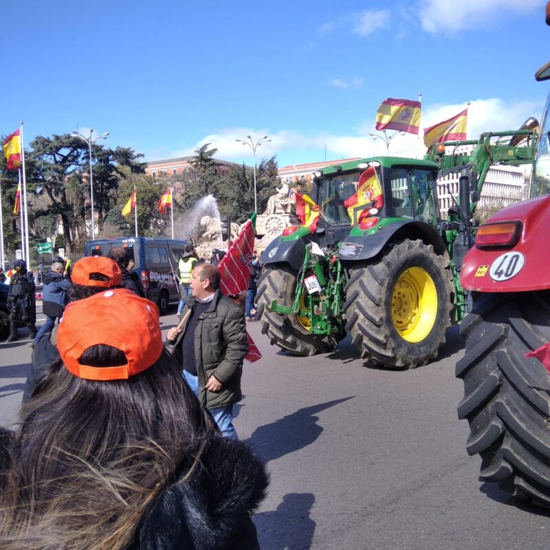 Los miles de agricultores y ganaderos, centenares de ellos zamoranos, se concentraron esta mañana en Atocha ante la sede del Ministerio, mientras el ministro Planas defendía ante sus homólogos comunitarios en Bruselas la simplificación de la PAC, así como, entre otras medidas, la imposición de las cláusulas espejo para que los países de fuera de la UE cumplan las mismas exigencias fitosanitarias aplicadas a los productos españoles.