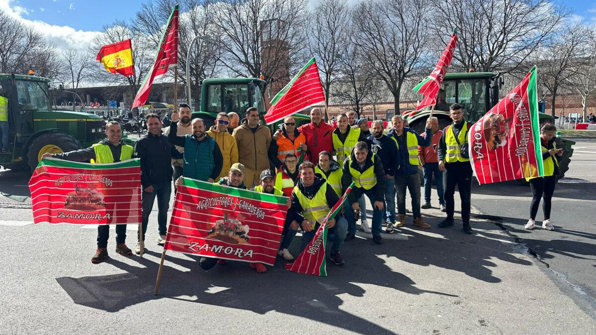 Los agricultores y ganaderos de la provincia de Zamora se han hecho notar esta mañana en Madrid en la manifestación convocada por las organizaciones profesionales agrarias. Numerosos agricultores llegaron en autobuses y vehículos particulares para participar en la cuarta semana de protestas en defensa del sector primario.
