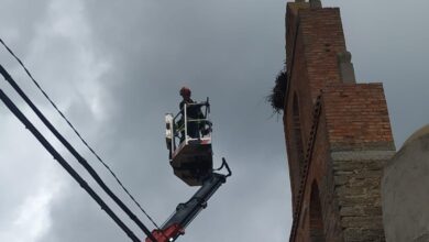 VÍDEO: El peligro para los vecinos obliga a un Ayuntamiento de la comarca a la retirada de un nido de cigüeñas