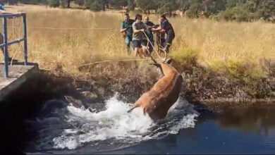 Vídeo | Rescatan a un ciervo que había quedado atrapado en un canal de riego
