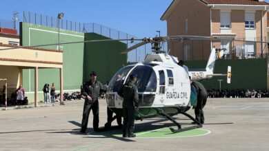 VIDEO: Los alumnos de La Vega viven el espectacular aterrizaje de un helicóptero de la Guardia Civil