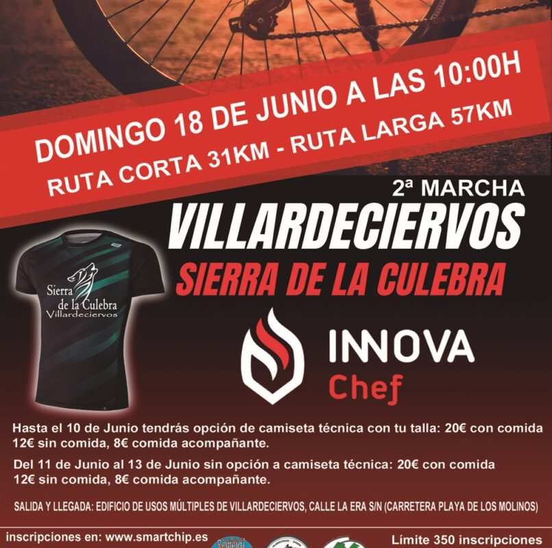 El Ayuntamiento de Villardeciervos junto con la colaboración técnica de SmartChip organiza la II Marcha de BTT SIERRA DE LA CULEBRA-VILLARDECIERVOS que tendrá su salida oficial el domingo día 18 de Junio de 2023 a las 10:00 horas desde el edificio de usos múltiples de Villardeciervos con arreglo a lo siguiente: