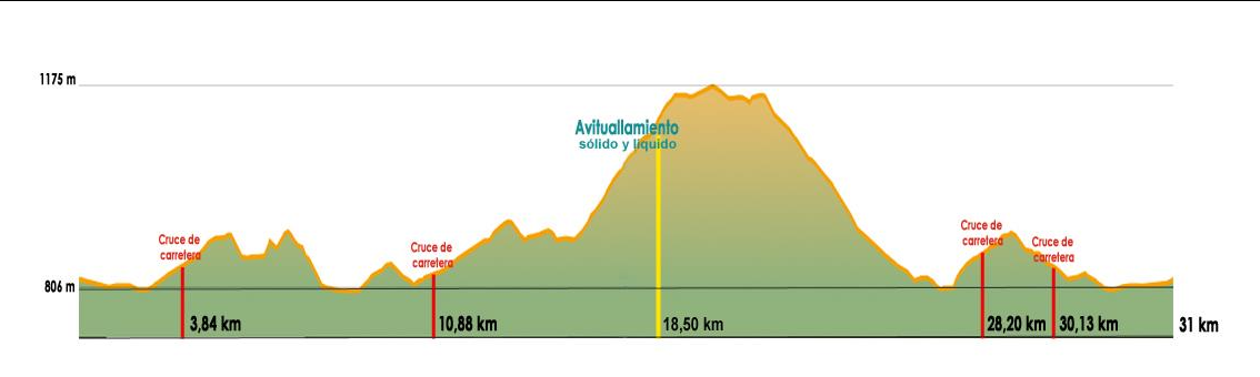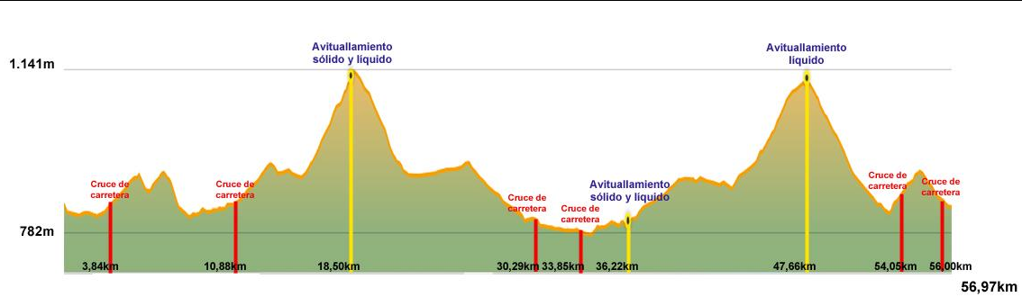 Avituallamientos: 3 avituallamientos en total, 1 avituallamiento (sólidos y líquidos) para el recorrido corto y otros dos para el recorrido largo; 1 avituallamiento (sólidos y líquidos) y 1 avituallamiento (líquidos).