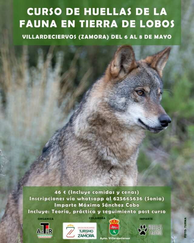 El responsable de Turismo de la Diputación también explicó que, aunque el cartel incluye un lobo que es uno de los animales salvajes más representativos de la Sierra de la Culebra, y por tanto de Villardeciervos, no es un curso para estudiar solo el rastro del lobo, sino de todo tipo de fauna salvaje como el jabalí, corzo, ciervo, así como todo tipo de aves, anfibios … etc.