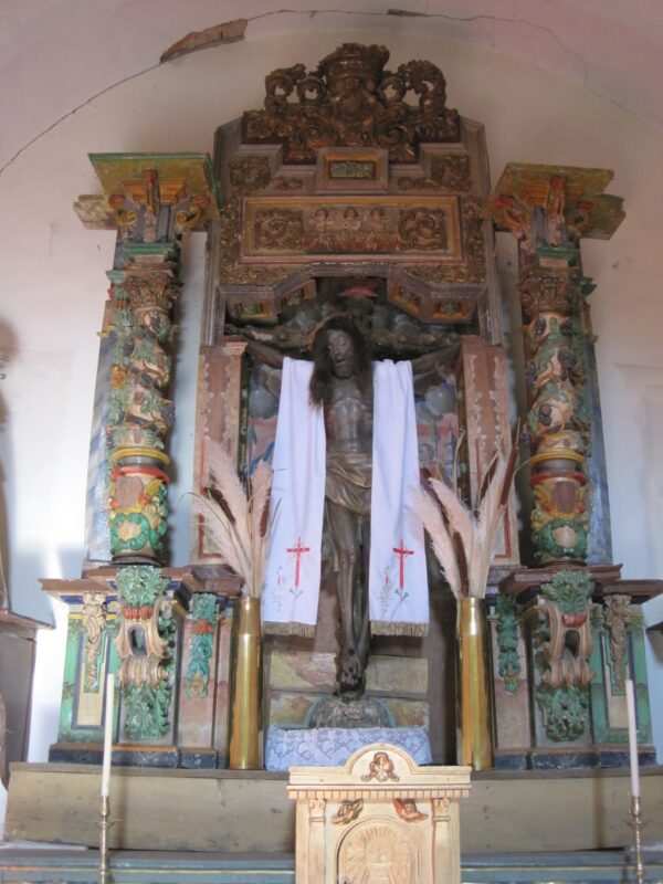 Imagen del Santo Cristo de los Afligidos, en su altar en la iglesia de Villaveza del Agua