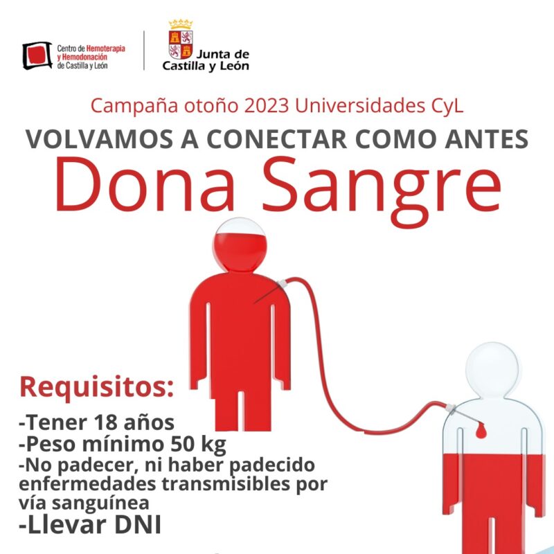 Hacerse donante de sangre es muy sencillo, ya que puede donar cualquier persona sana, mayor de 18 años, con un peso mínimo de 50 kilos y que no padezca ni haya padecido ninguna enfermedad transmisible por vía sanguínea.El calendario de campañas en los centros de enseñanza así como lo horarios y otros lugares de donación pueden consultarse en la web del Centro de Hemoterapia y Hemodonación de Castilla y León .