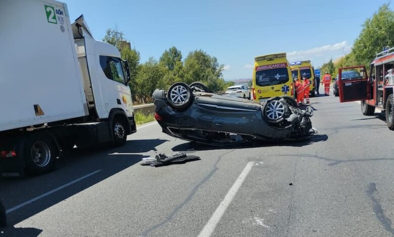 Un vehículo volcó tras perder una rueda, lo que provocó la solicitud inmediata de asistencia para el conductor. Se trata de un varón de unos 30 años, quien resultó con heridas leves.