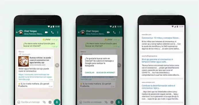 La aplicación de mensajería WhatsApp ha introducido una nueva función para evitar la difusión de bulos que permite llevar a cabo búsquedas en Internet cuando se reciben mensajes reenviados para comprobar así la información que contienen.