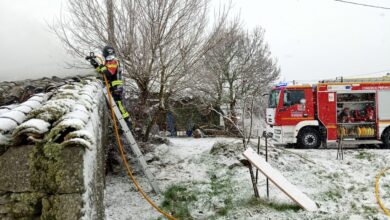 Efectivos del Parque de Bomberos Zona Sur del Consorcio Provincial de Prevención y Extinción de Incendios, Salvamentos y Protección Civil de la Diputación de Zamora, con base en Bermillo de…